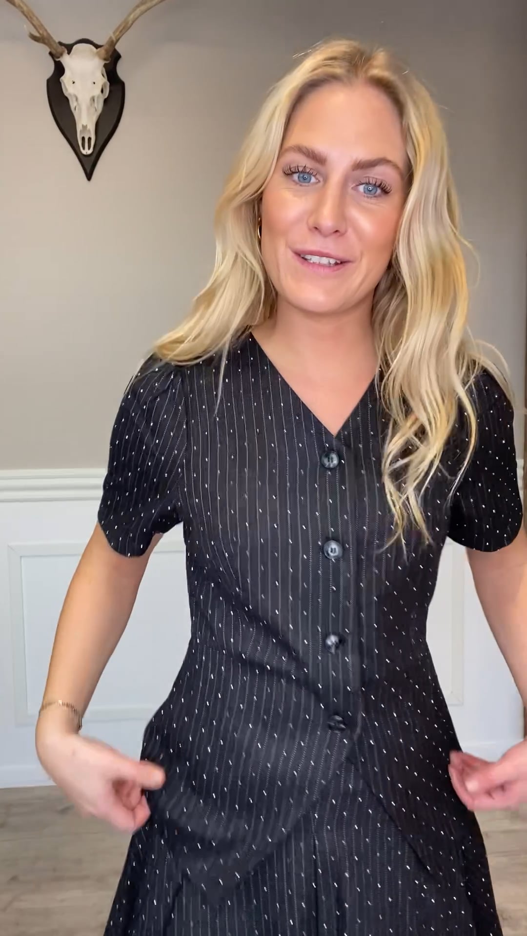 En fin top fra Neo Noir er kommet med striber i grå og hvid samt med små sten som giver et elegant og flot udtryk. Den er med korte ærmer og kan nemt styles til nederdelen fra samme brand.