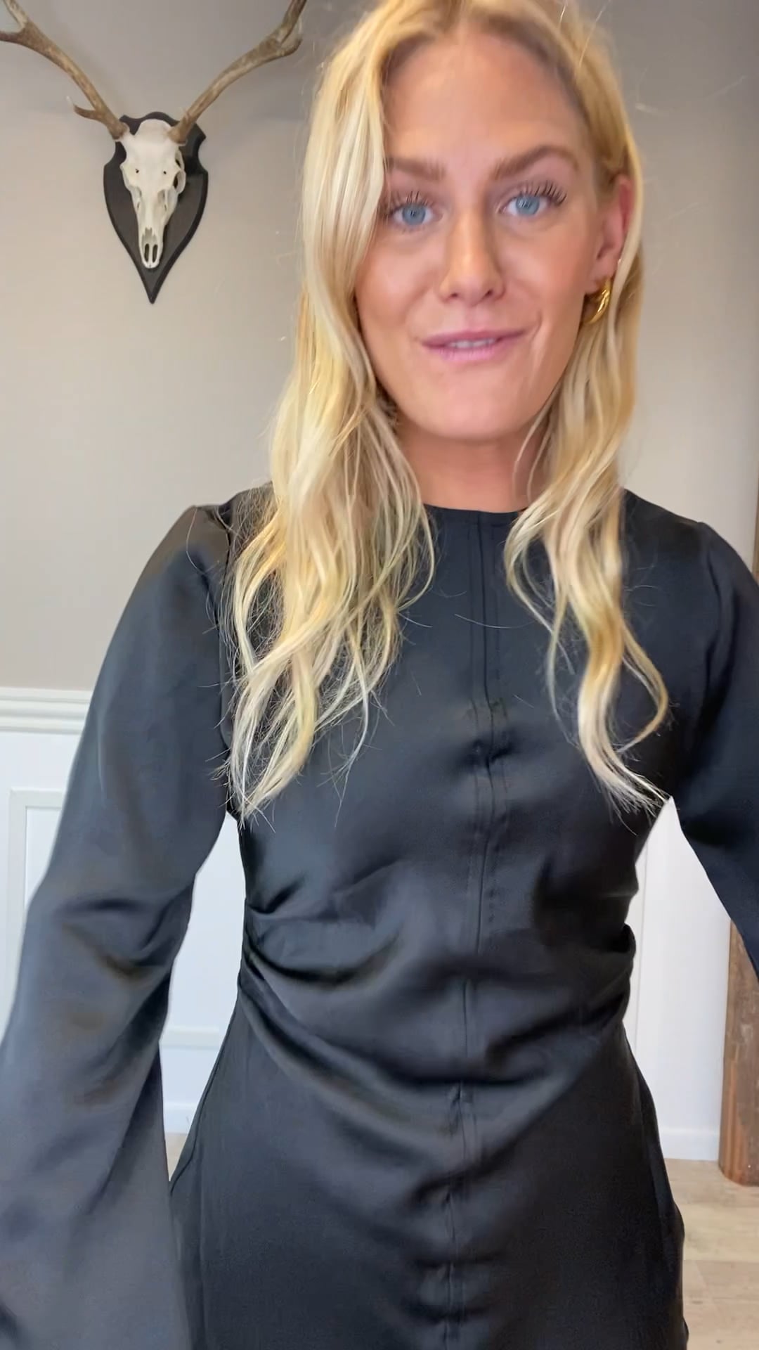 Den smukkeste kjole fra Neo Noir i satin look. Den har rynke detalje i siderne, hvilket gør at den sidder så smukt på kroppen. Derudover har den lange ærmer og en lynlås i ryggen. Den er perfekt til sæsonens fester! Og kan nem styles til både støvler og stiletter.