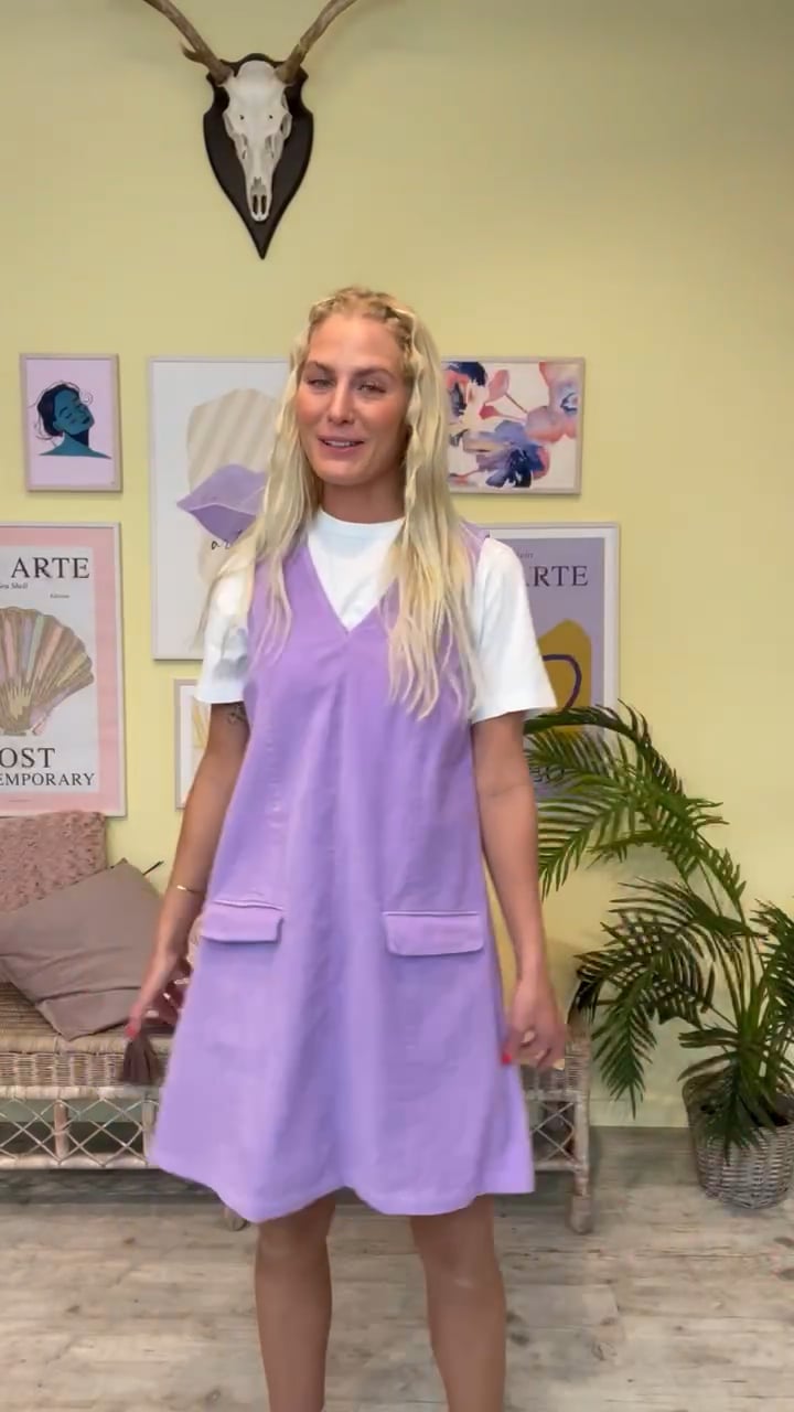 En cool spencerkjole fra Neo Noir i et let fløjlslook. Kjolen har a-snit som vi kender den klassiske spencerkjole. Den har v-udskæring og lommer foran der giver et afslappet toutch. Style den med en t-shirt under eller skjorte alt efter humør.