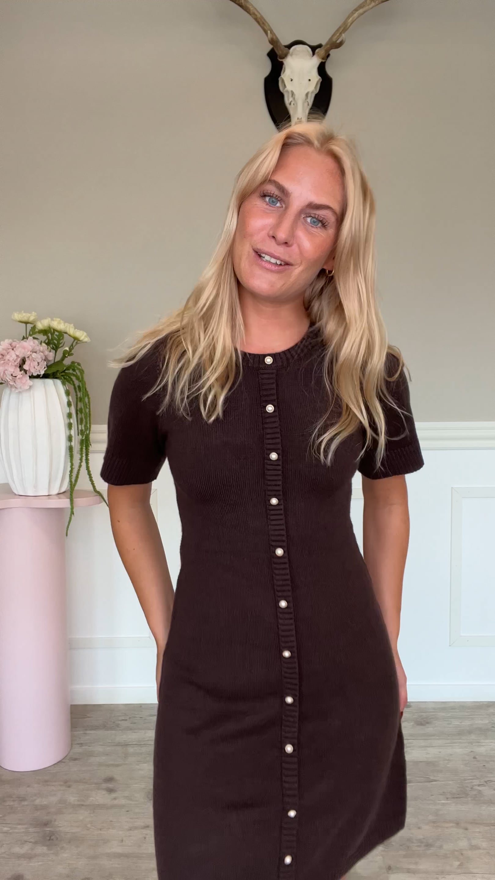 En super fin og elegant kjole fra Neo Noir i den lækreste strik! Denne kjole har pynteknapper hele vejen ned, som er smukke og detaljerede. Kjolen sidder flot til på overkoppen, hvorefter den går lidt ud fra taljen, hvilket giver en super smuk og feminin figur!