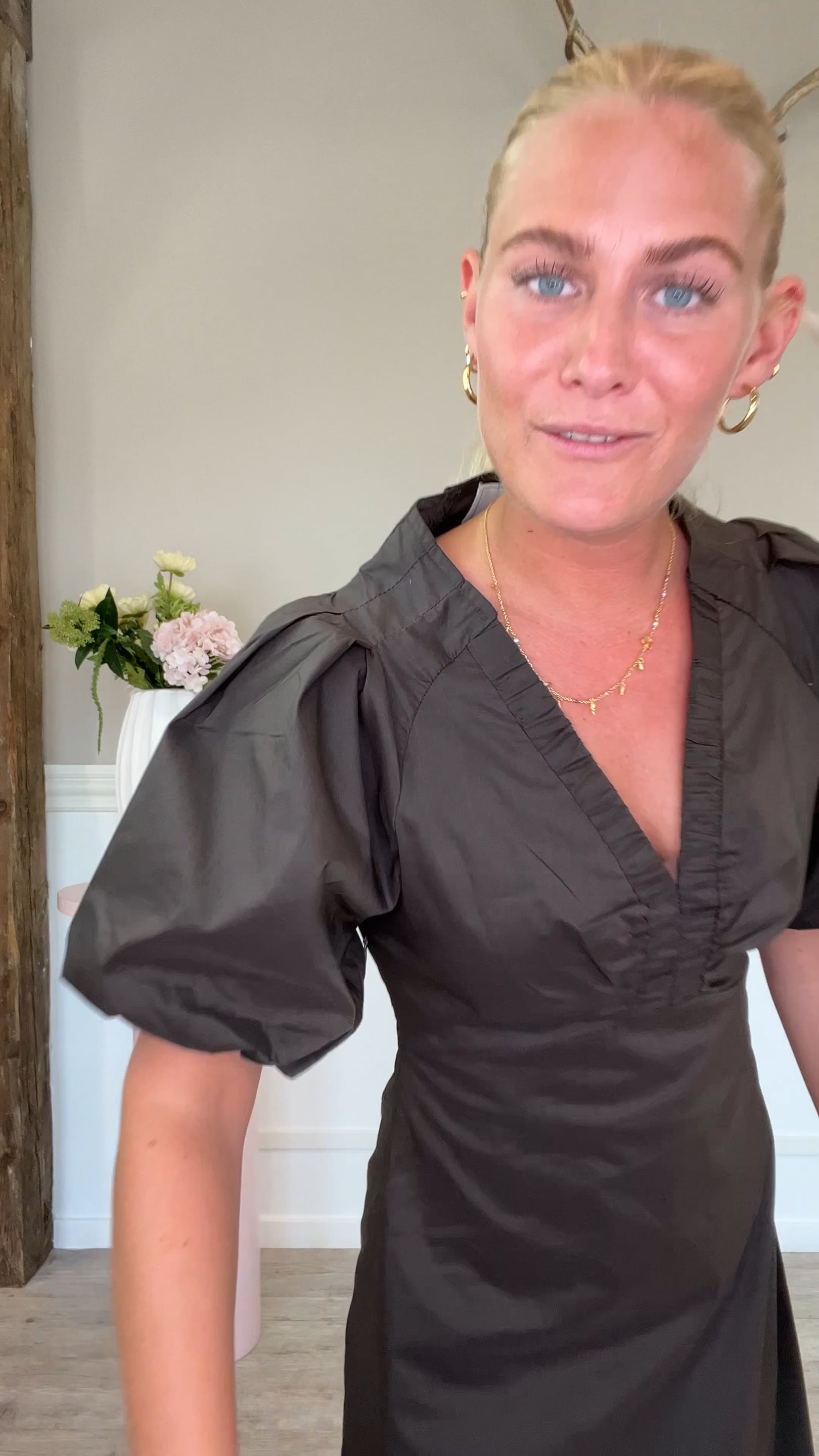 En helt simpel kjole fra Neo Noir med små diskrete detaljer. Kjolen har et fint a-snit med en smule talje, v-udskæring og korte volumiøse ærmer. Den har smockeffekt ved kraven der giver en rynkedetalje ved barmen og et lidt sporty udtryk. Denne kjole kan styles til diverse anledninger både pænt og hverdag.