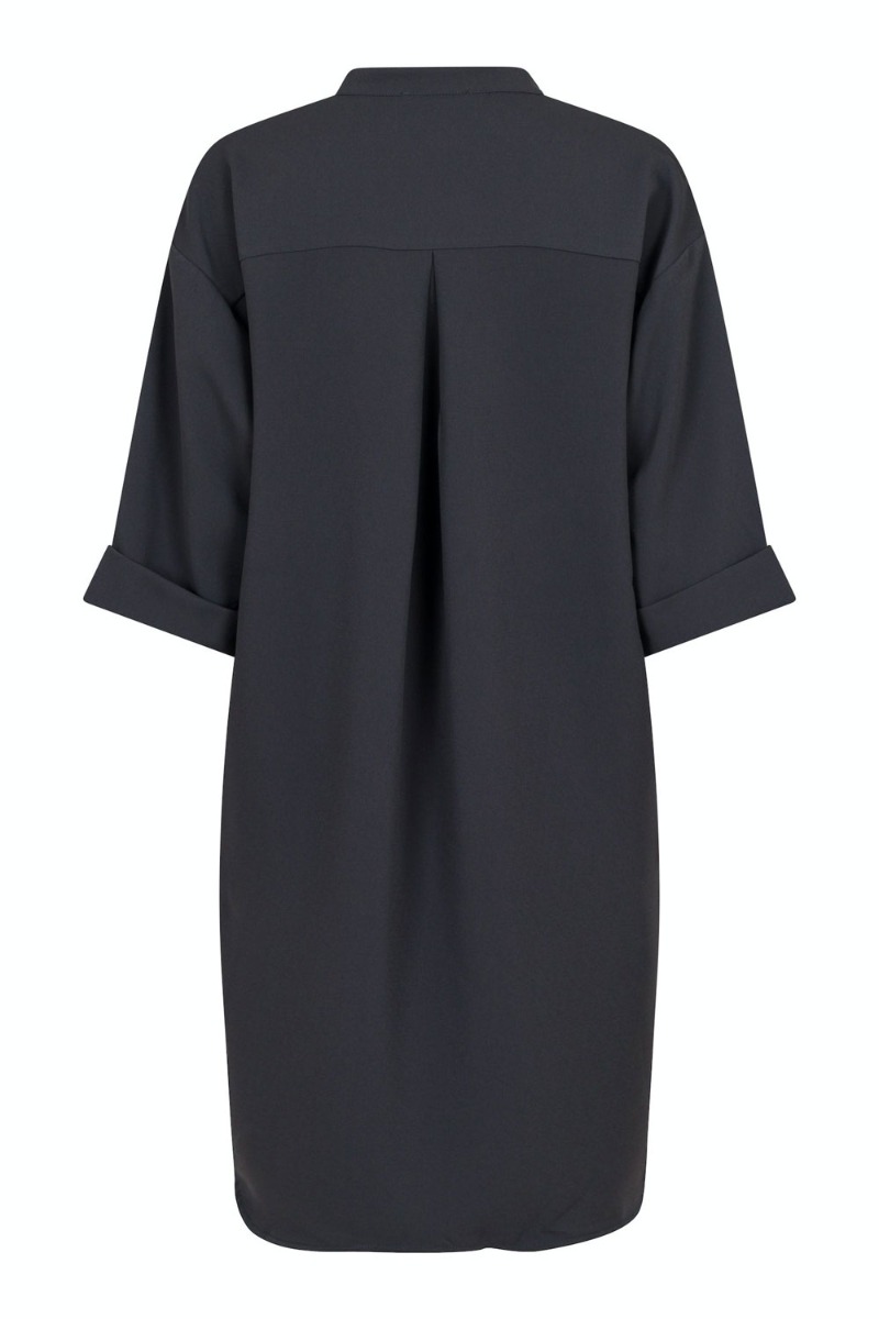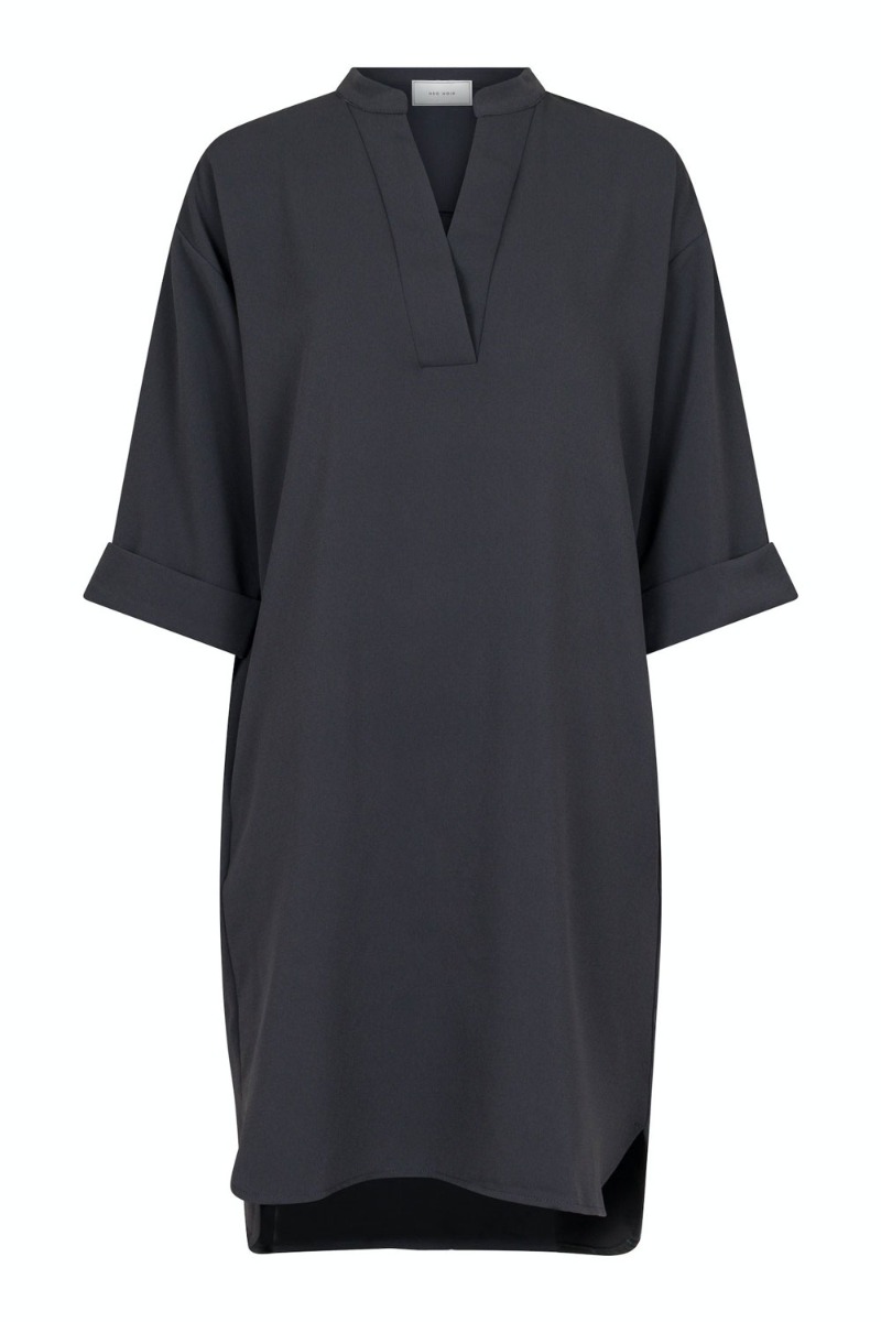 Den fineste kjole fra Neo Noir er kommer i en smuk stålgrå farve. Den er løs i pasformen, har lommer i begge sider og har V halsudskæring. Den er en anelse længere bagud end foran og den har 3/4 lange brede ærmer med en lille fodledetalje ved bunden.