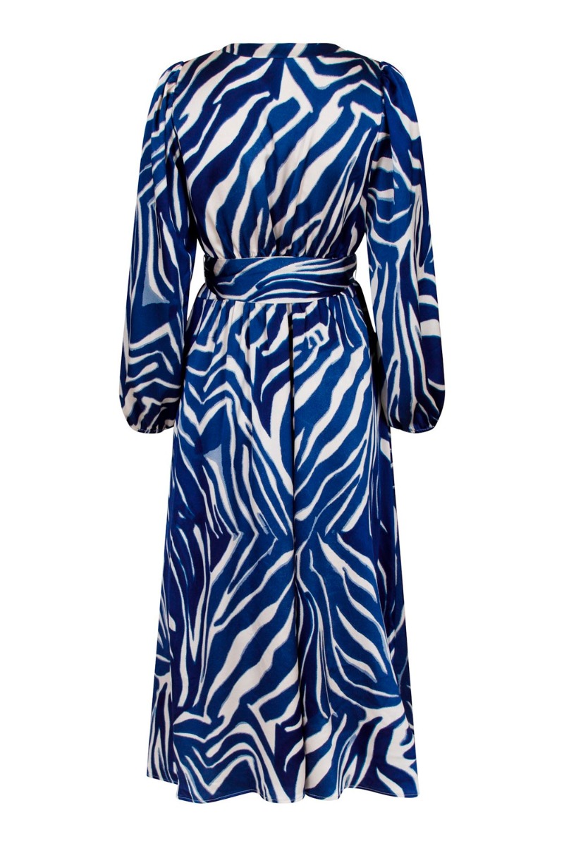 Neo Noir har lavet denne smukke kjole i et smukt blåt print. Den er i en satin kvalitet og har et aftageligt bindebånd i taljen. Derudover er der elastik i taljen bagpå og ballonærmer. Der er en fin knap detalje foran og en løs pasform i underdelen.