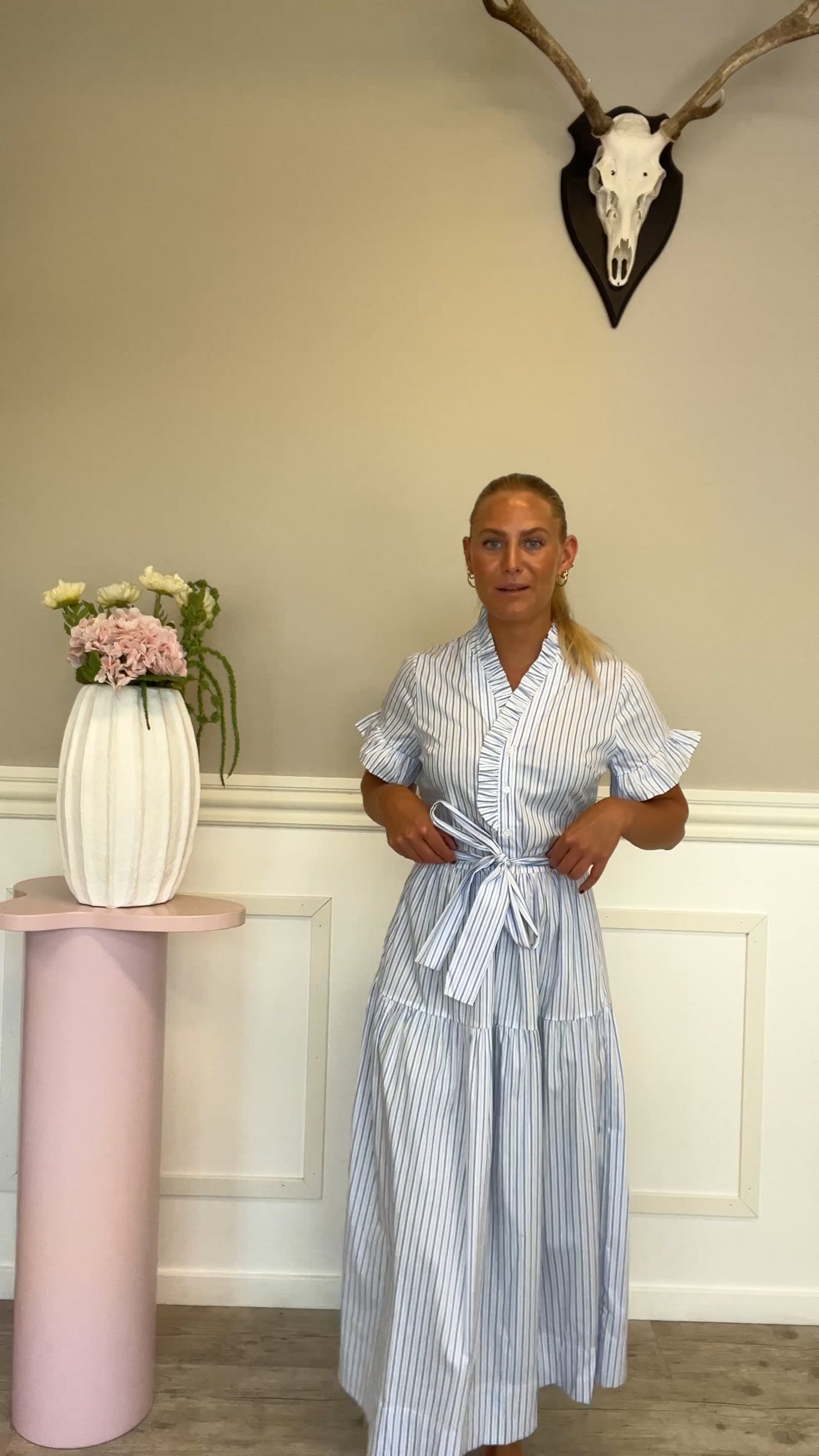 Neo Noir - Kjole - Nessie Stripe Dress - White/Light Blue