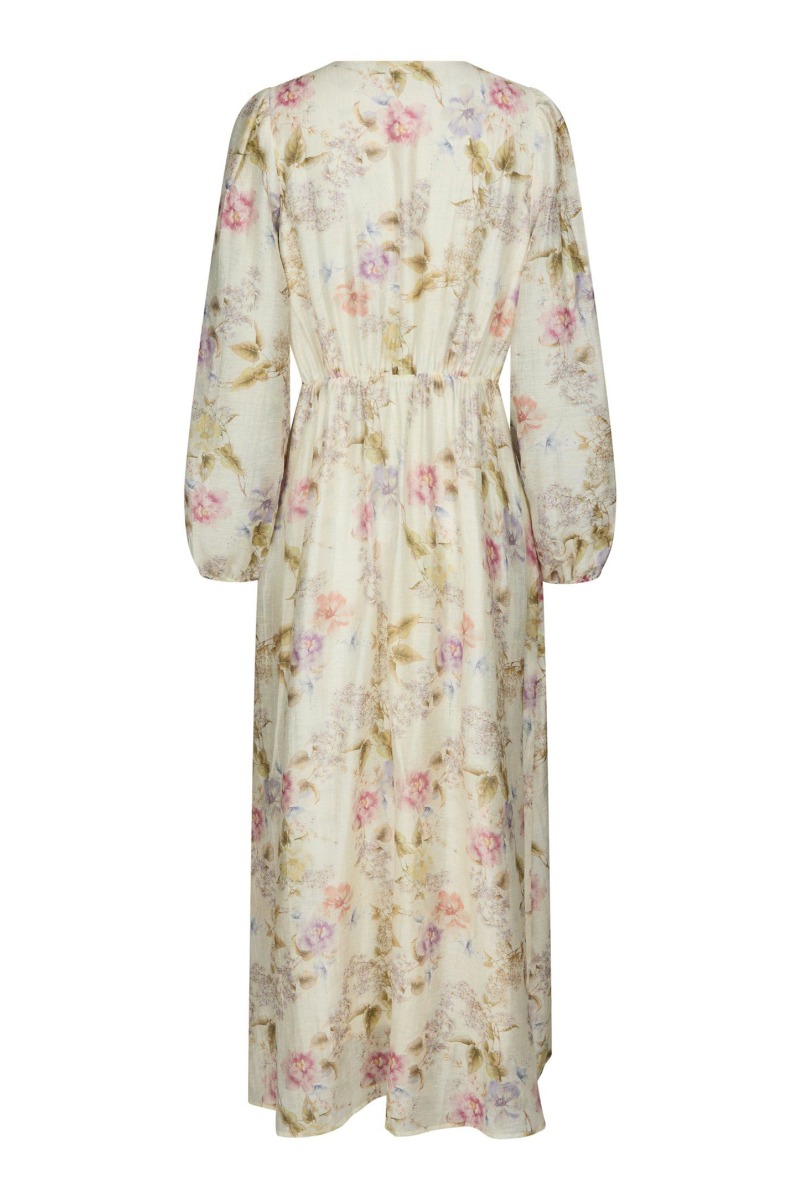 Den smukkeste kjole er netop landet fra Neo Noir, og den er helt perfekt til din næste fest! Kjolen er i en flot cremefarve med de fineste blomster på. Den har et flot fald, er syet let ind i taljen og har fyldige ærmer samt v-hals. Style den til et par stilletter eller sandaler til sommer!