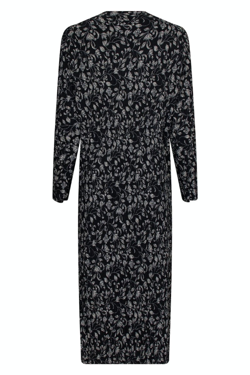 En sød kjole fra Neo Noir i sort med hvidt print. Den er i en plisseret kvalitet, derfor er den også god som graviditetstøj. Den har en simpel afslutning ved hals, ærmer og bund. Derudover er der slids i bunden i begge sider som gør at den er til at bevæge sig i.