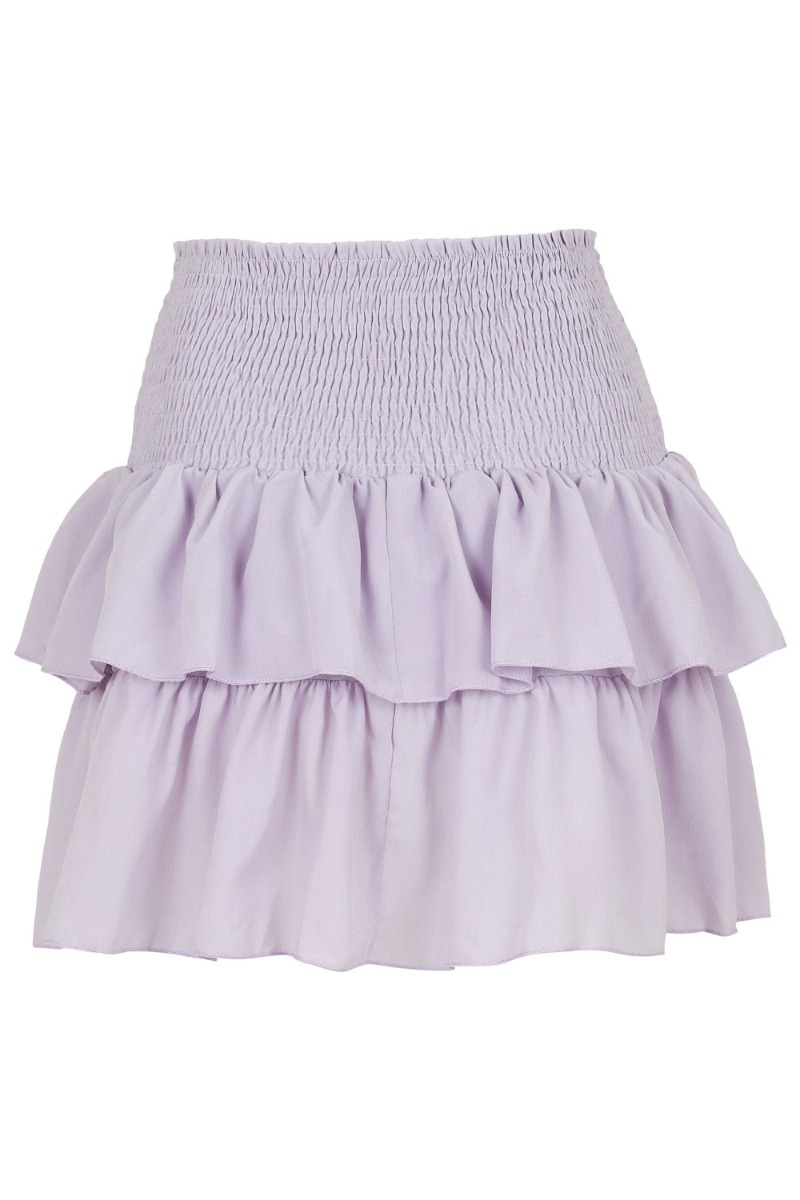 Sød lille kort nederdel fra Neo Noir i lavendel. Nederdelen har en bred smock elastik fra taljen og ned til hofterne der gør den super behagelig at have på. Den er designet med lag-på-lag effekt der giver en fin flæse i skørtet. Style den til en sød top til en varm sommerdag.