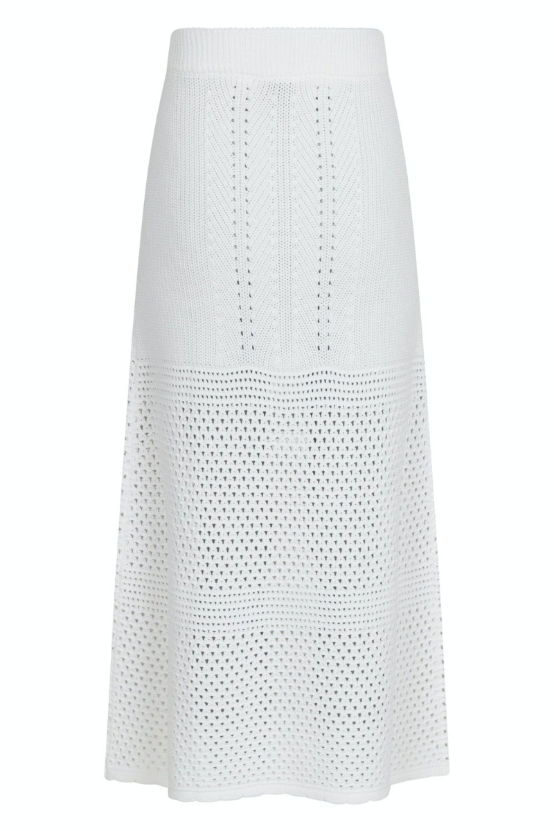 Flotteste strikket hvide nederdel fra Neo Noir med matchende top. Nederdelen er lang med elastik i livet og det flotteste hullet mønster. Style det her til de solrige sommerdage både som sæt men også hver for sig. Nederdelen er super sød at bruge over bikinien også på ferie.