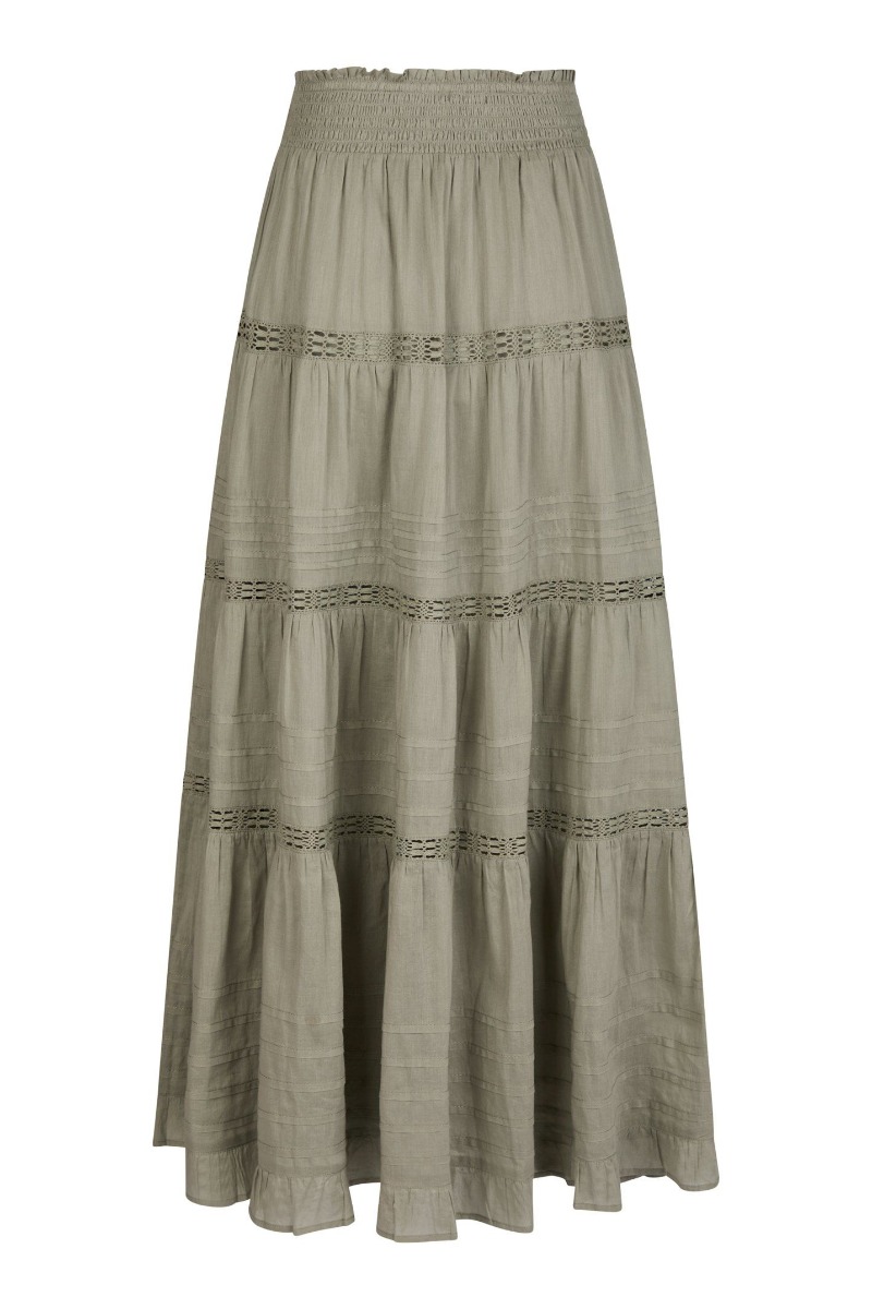 En sød nederdel fra Neo Noir der er perfekt til de varme sommerdage. Nederdelen er lang i et løst a-snit med de fineste detaljer. Den er foret indvendigt så den ikke bliver gennemsigtig og har en bred smock ved livet der gør den utrolig behagelig at have på uden noget strammer.