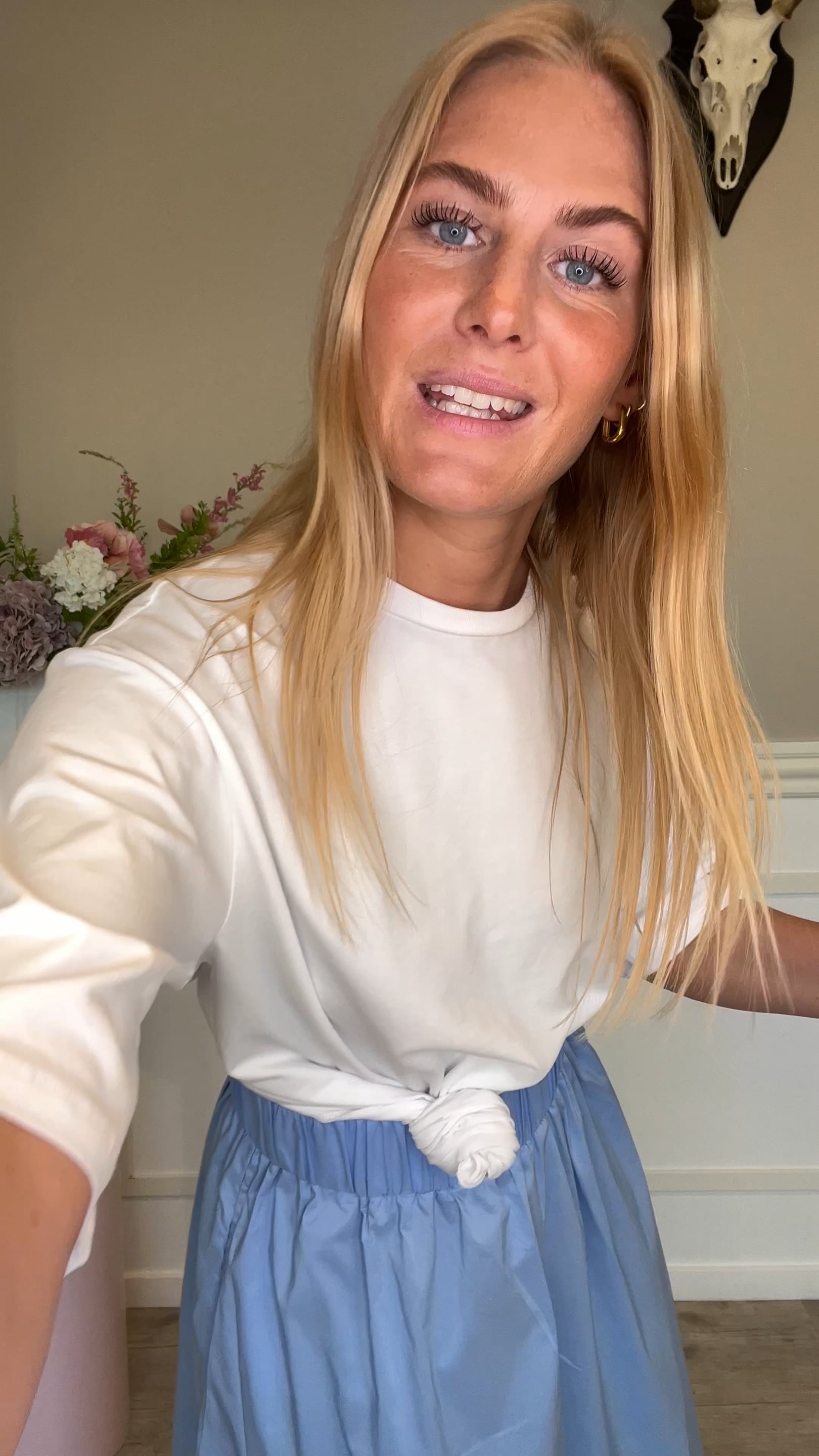 En smuk nederdel fra Neo Noir er landet til dette forår. Den er med A-snit og derfor rummelig i bunden. Den har en bred elastikkant i taljen og skrålommer i begge sider. Lommerne sidder lige ved syningen i siden, derfor er de ikke så synlige. Den er fin til en enkel t-shirt eller sammen med en pæn skjorte.