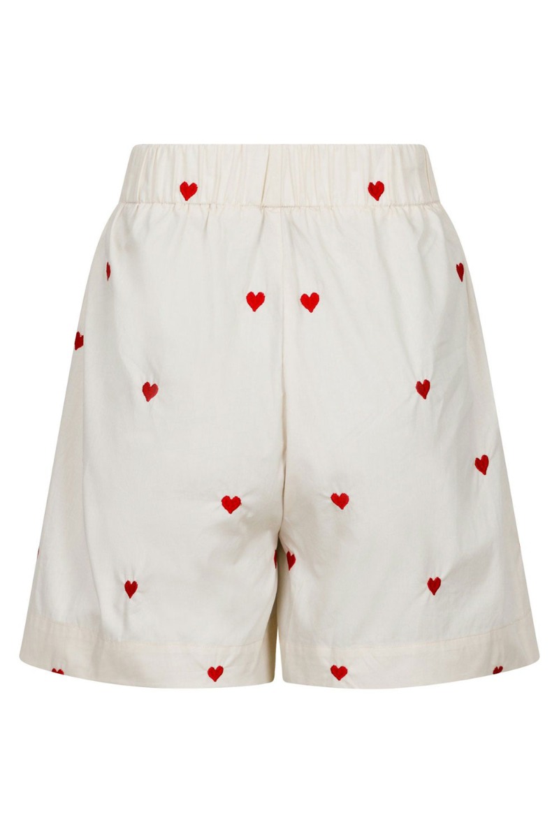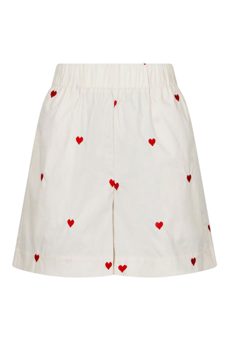 De fineste shorts fra Neo Noir! Shortsene er i cremefarvet med de fineste broderede røde hjerter på. De har elastik i taljen og har en løs pasform, så de er så skønne og behagelige at have på!