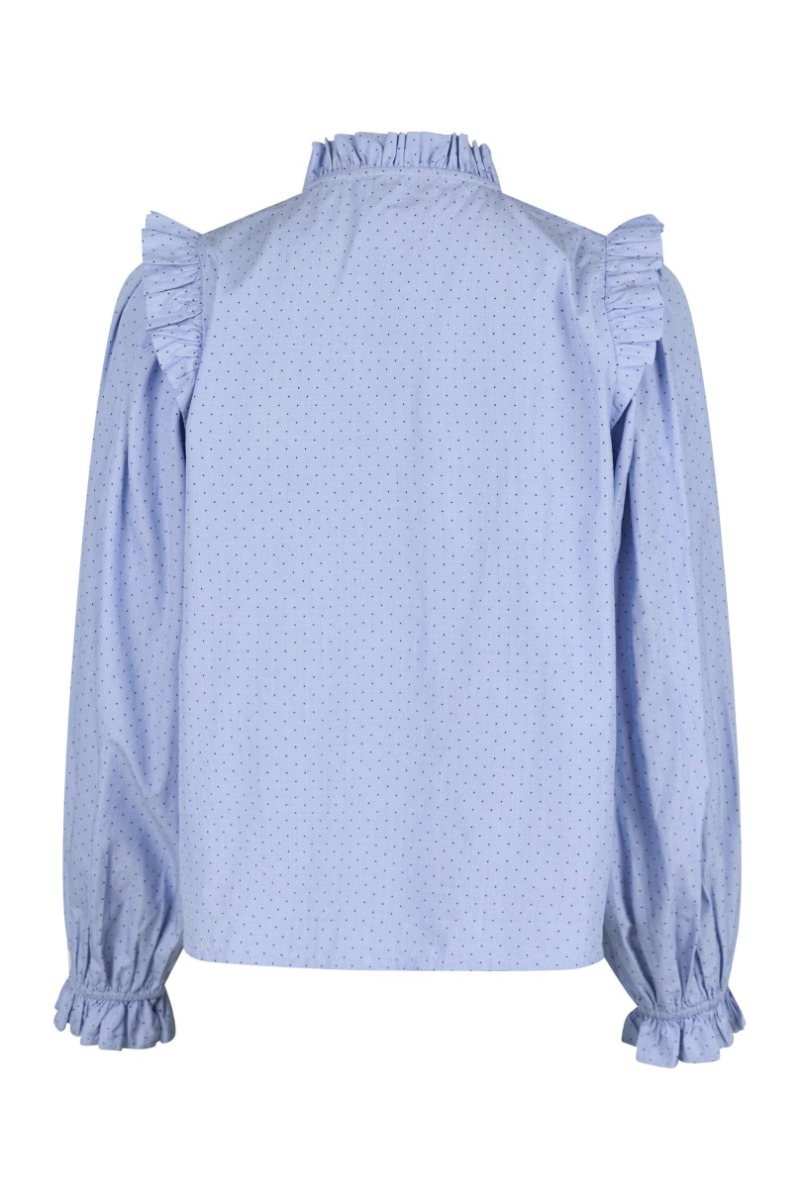 En super sød og feminin skjorte fra Neo Noir. Denne skjorte har en lyseblå farve med små mørke prikker. Den har elastik ved håndledene og knaplukning foran. Et virklig fint valg både til hverdag, men også festlige begivenheder.