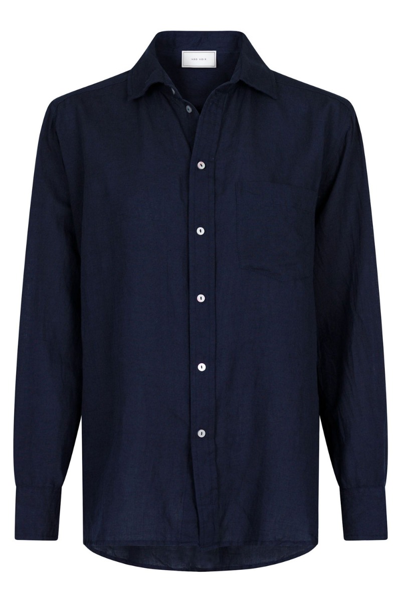 En simpel og nem skjorte i en navy farve fra Neo Noir. Den er i en lækker blød hør kvalitet og som er nem at bruge her til foråret. Den er helt klassisk i sin skjorte model med synlige knapper, skjortekrave og med en brystlomme i den ene side. Den findes også i army.