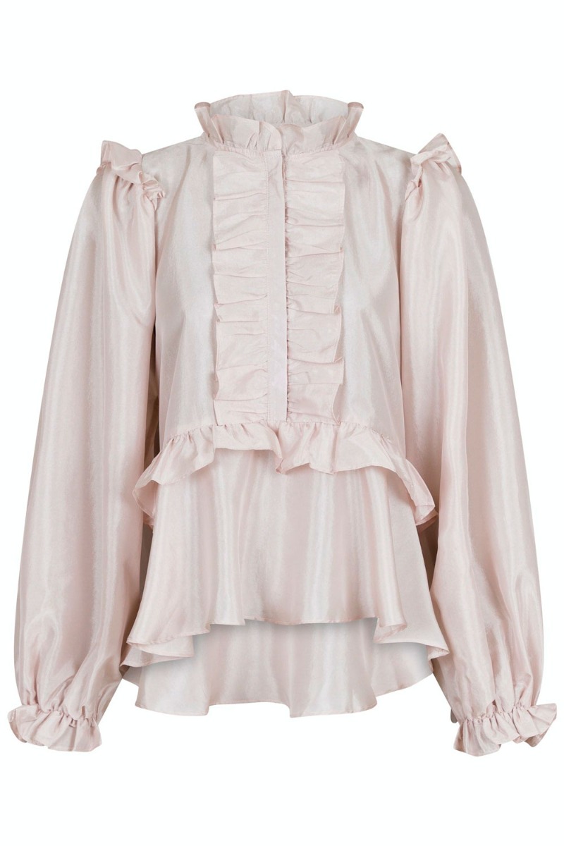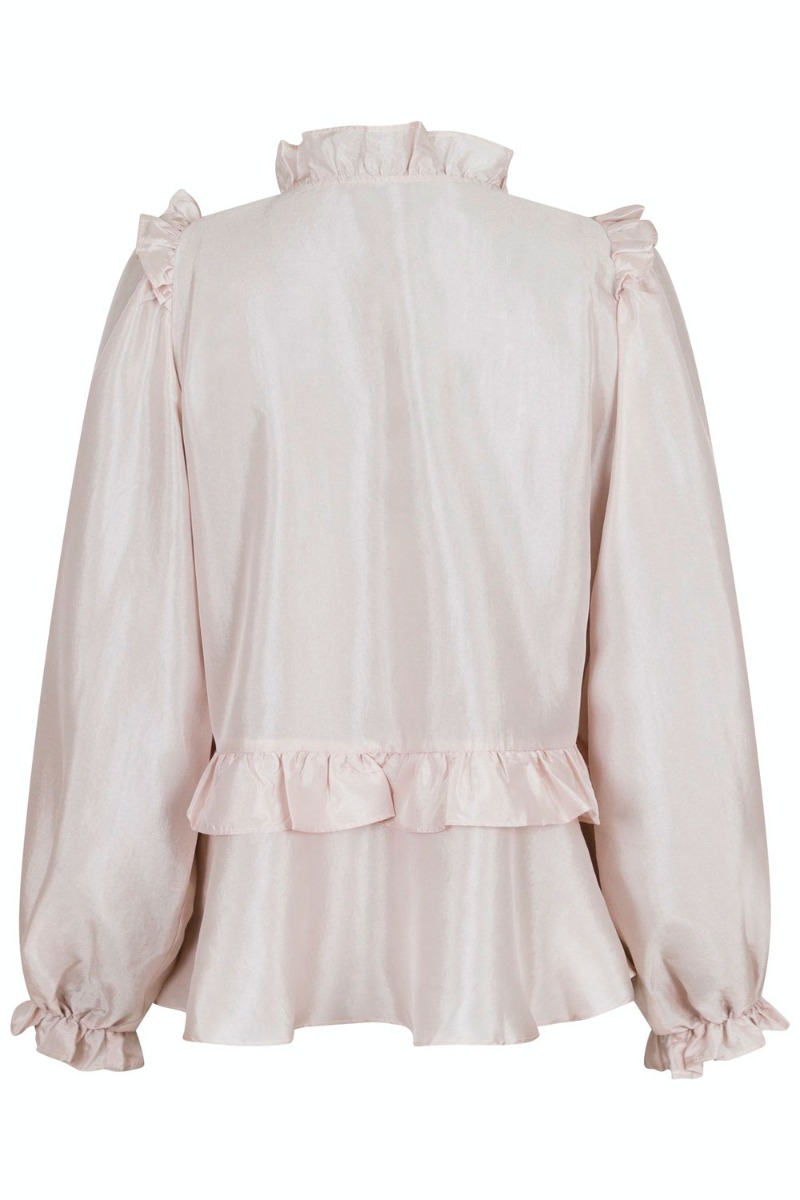 Feminin bluse fra Neo Noir i en flot lysbeige. Blusen er med flæsedetalje foran og ved kraven. Den er designet med en smule shineeffekt, lange ærmer og skjult knaplukning foran. Blusen er oplagt til de kommende fester med en pæn buks eller nederdel til.