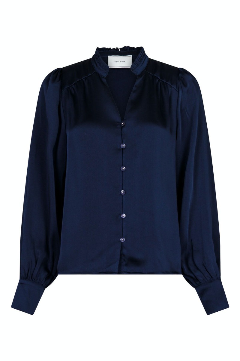 Neo Noir - Skjorte - Massima Drapy Satin Blouse - Dark Navy