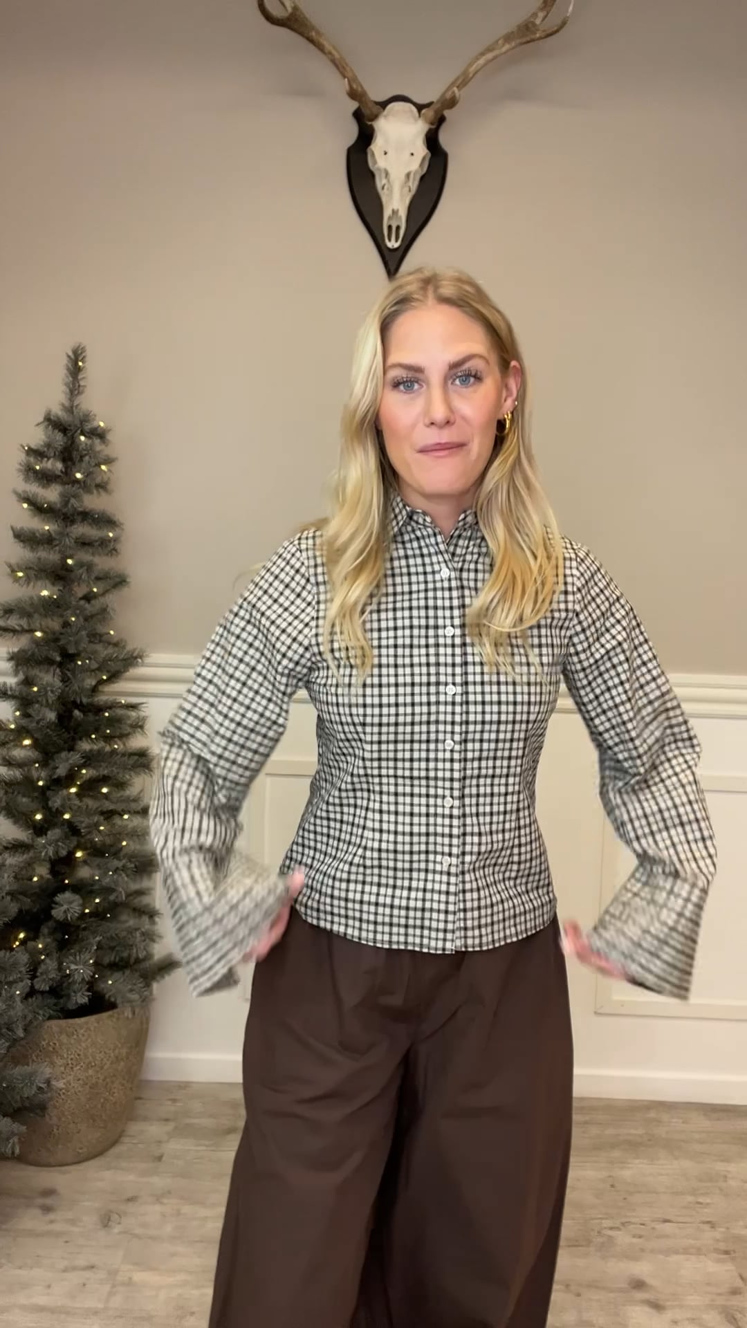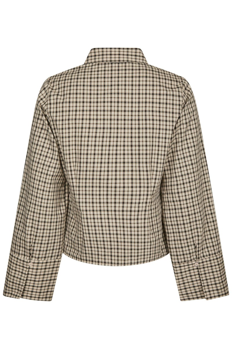 En sød figursyet skjorte fra Neo Noir er kommet i denne smukke brun ternet model. Det er en kendt model men i et nyt print. Derudover er den med lange brede ærmer og har klassisk skjortekrave samt synlige knapper. Perfekt til hverdag med en nederdel eller til et par jeans.