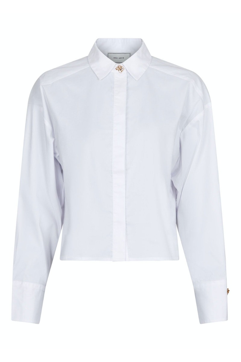 Denne skjorte er super fin til dette forår! Den er kommet i hvid og er fra Neo Noir. Den er kort i modellen og har skjult knaplukning samt en fin knap detalje ved hals og ærmer. Derudover er den løs i pasformen og perfekt til et par jeans eller til en stram nederdel.