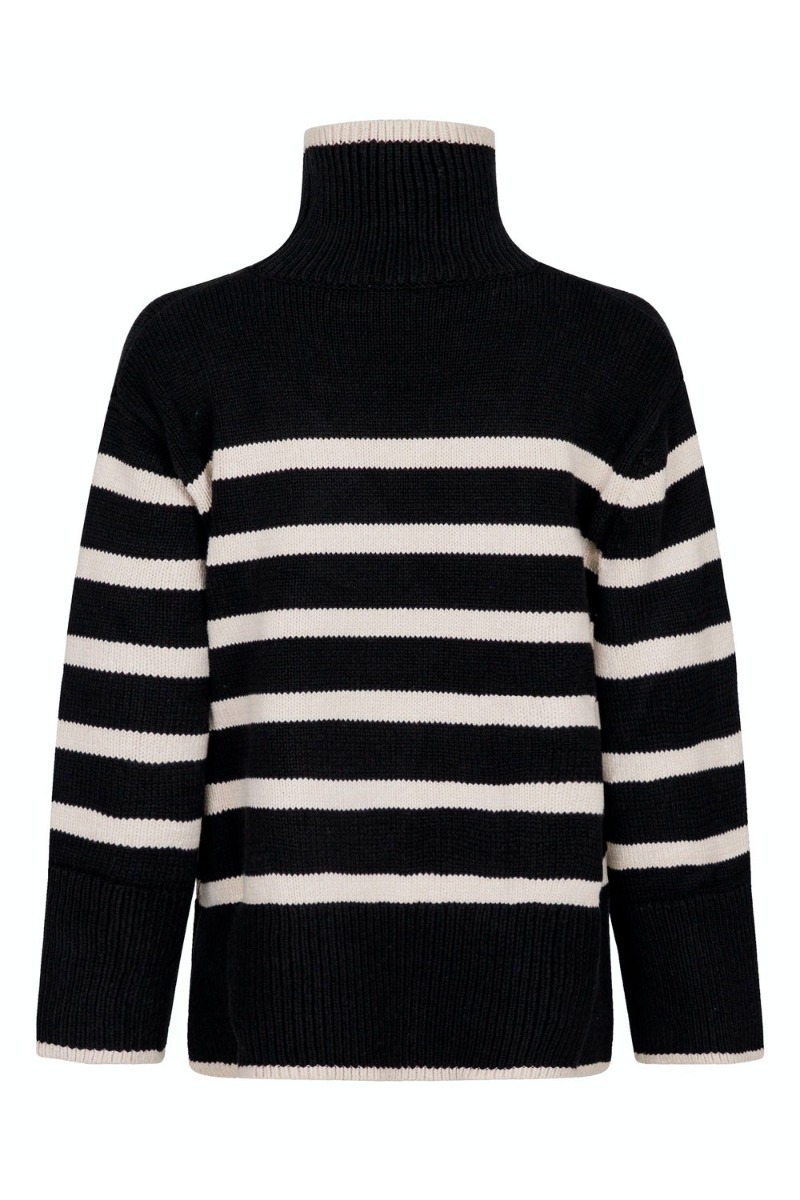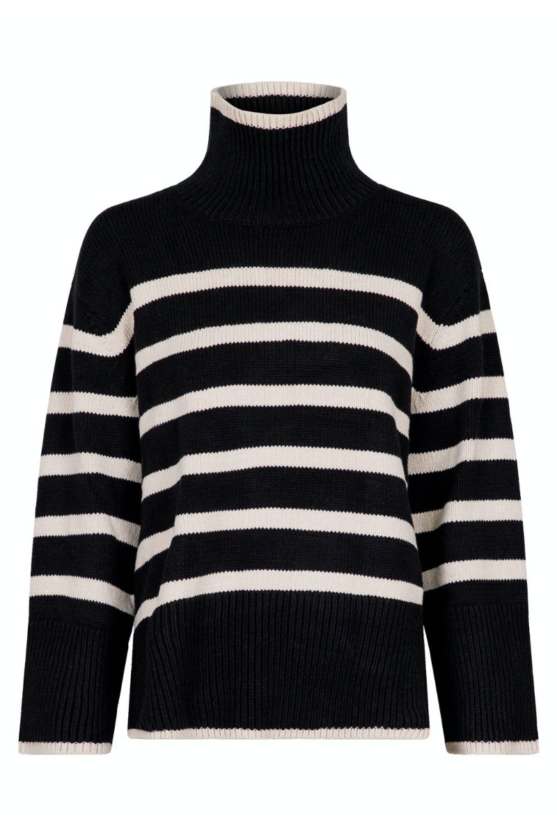 Neo Noir - Strik - Fanning Stripe Knit Blouse - Black