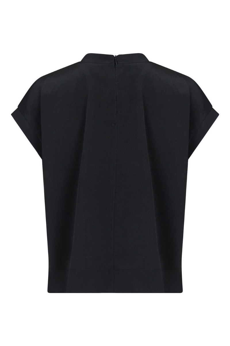 Feminin enkel top fra Neo Noir i sort. Toppen har et lille løst t-shirtærme og rund hals der lukkes bagtil med en diskret lynlås. Den har en let fin kvalitet der gør den anvendelig til både hverdag og fest.