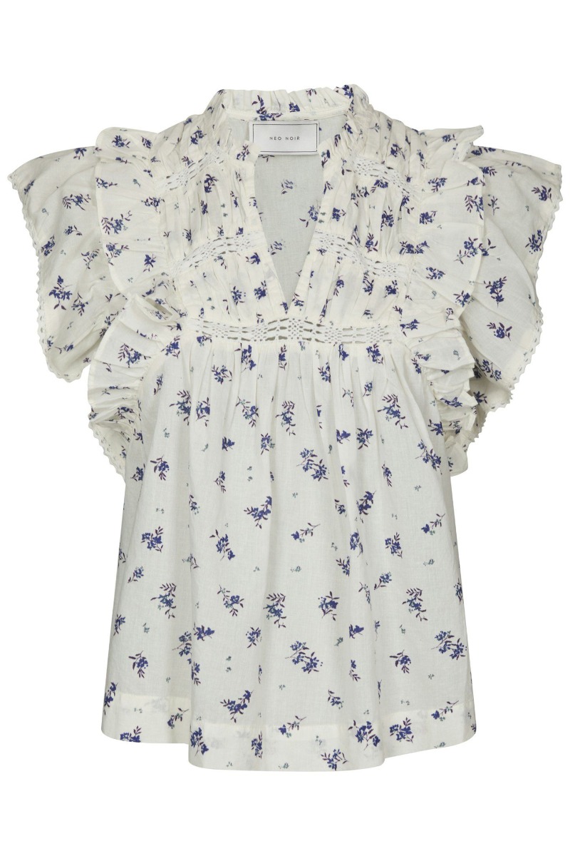 Neo Noir - Top - Jayla Small Blossom Top - White Blue (Levering midt april)