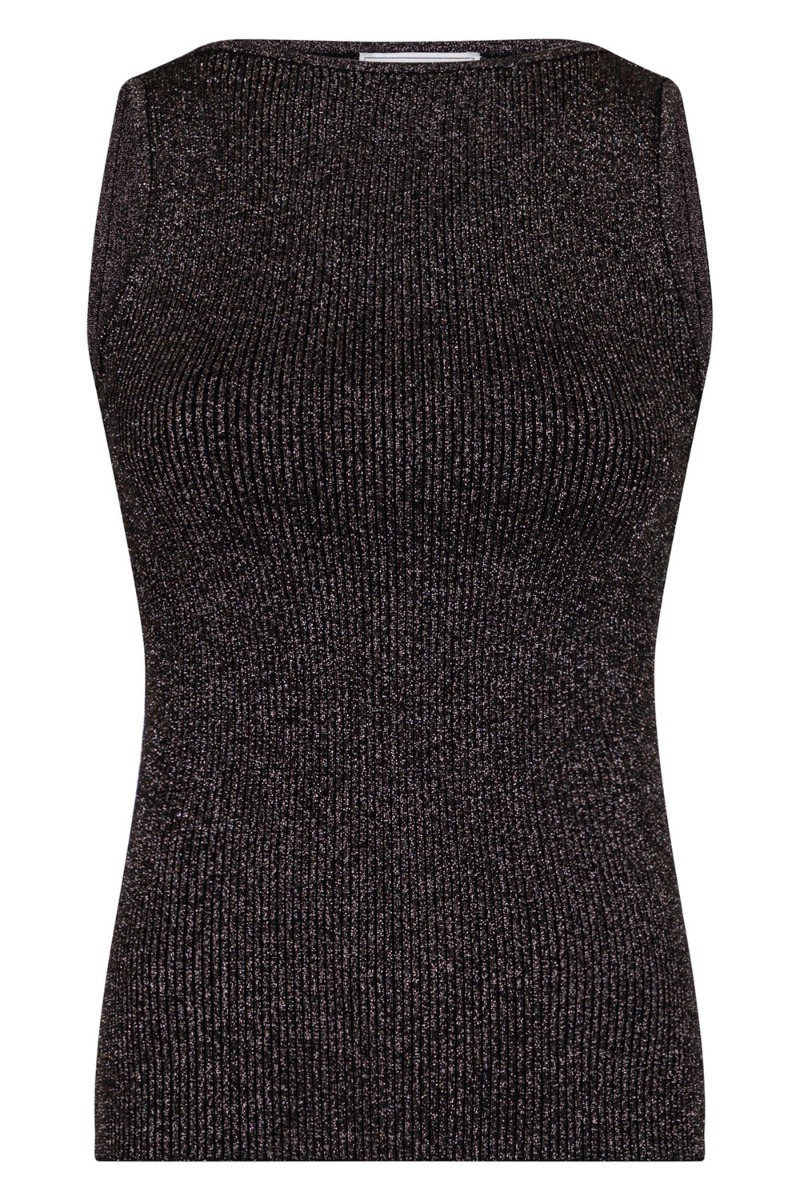 En smuk glimmer top er landet fra Neo Noir i sort. Denne top er med bådudskæring og i en kraftig rib kvalitet. Glimmeret er en tynd tråd der er vævet ind i stoffet, derfor drysser eller falmer det ikke i vask. Den kan bruges til hvilken som helst underdel.