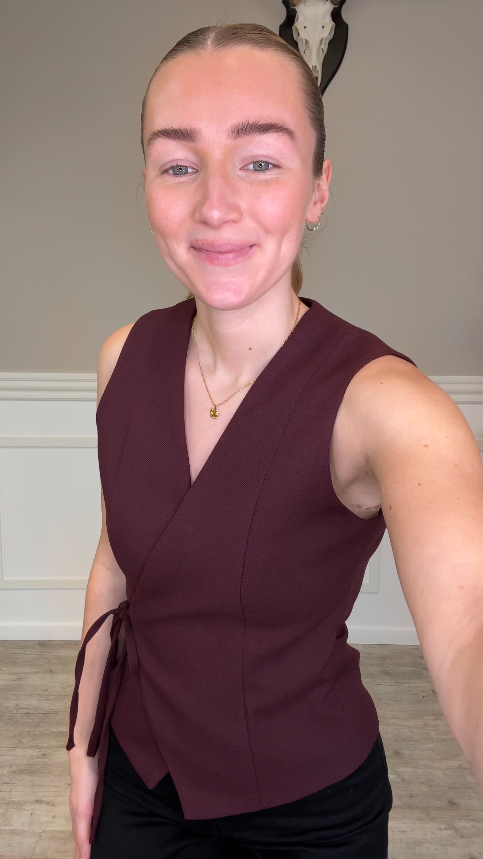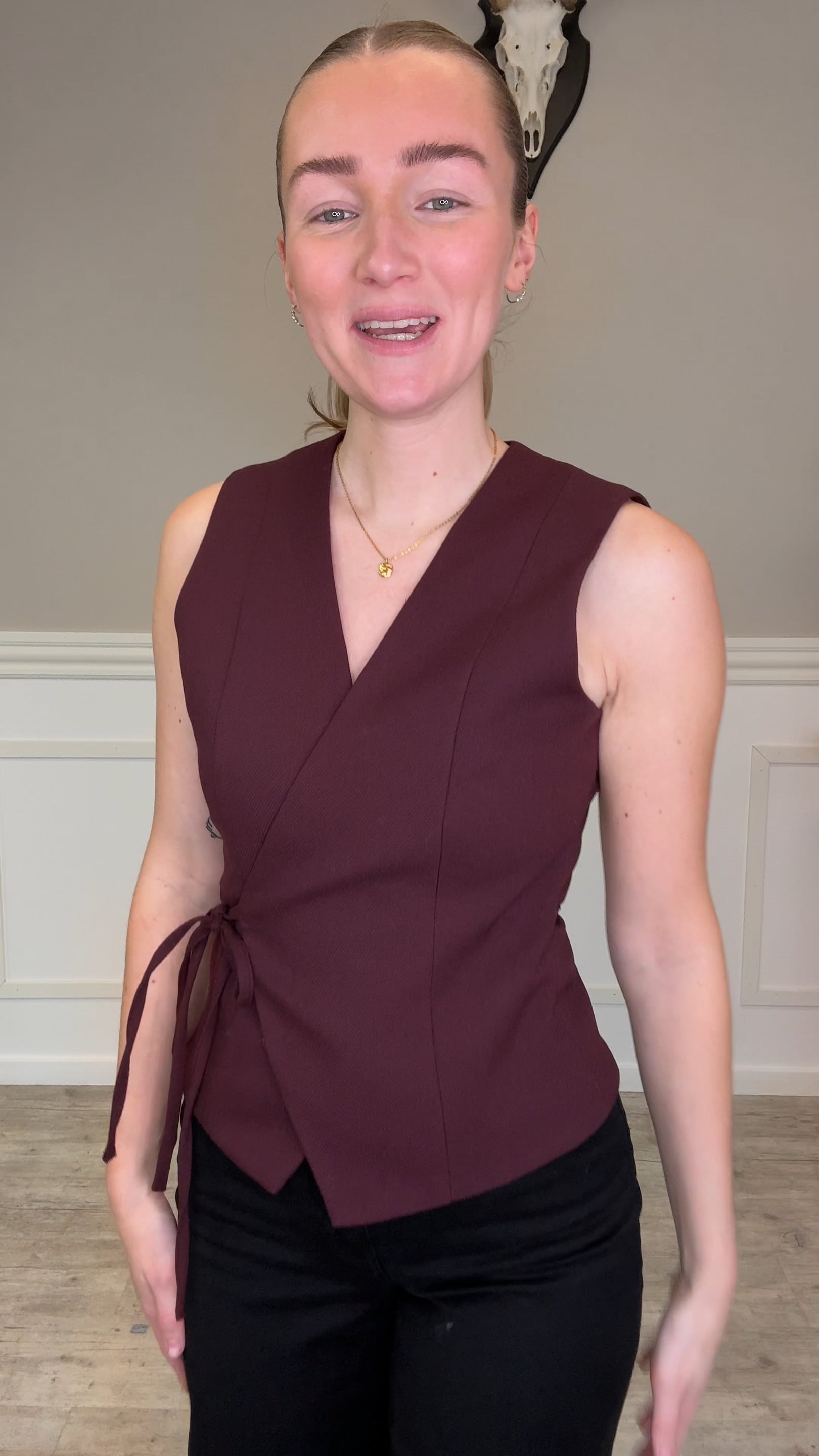 En utroligt fin top fra Neo Noir er landet. Den er lavet som en vest uden ærmer og med et bindebånd, så man selv kan justere toppen. Den er i en lækker blød kvalitet og kan sagtens styles sammen med et par jeans eller endda et par sorte bukser.