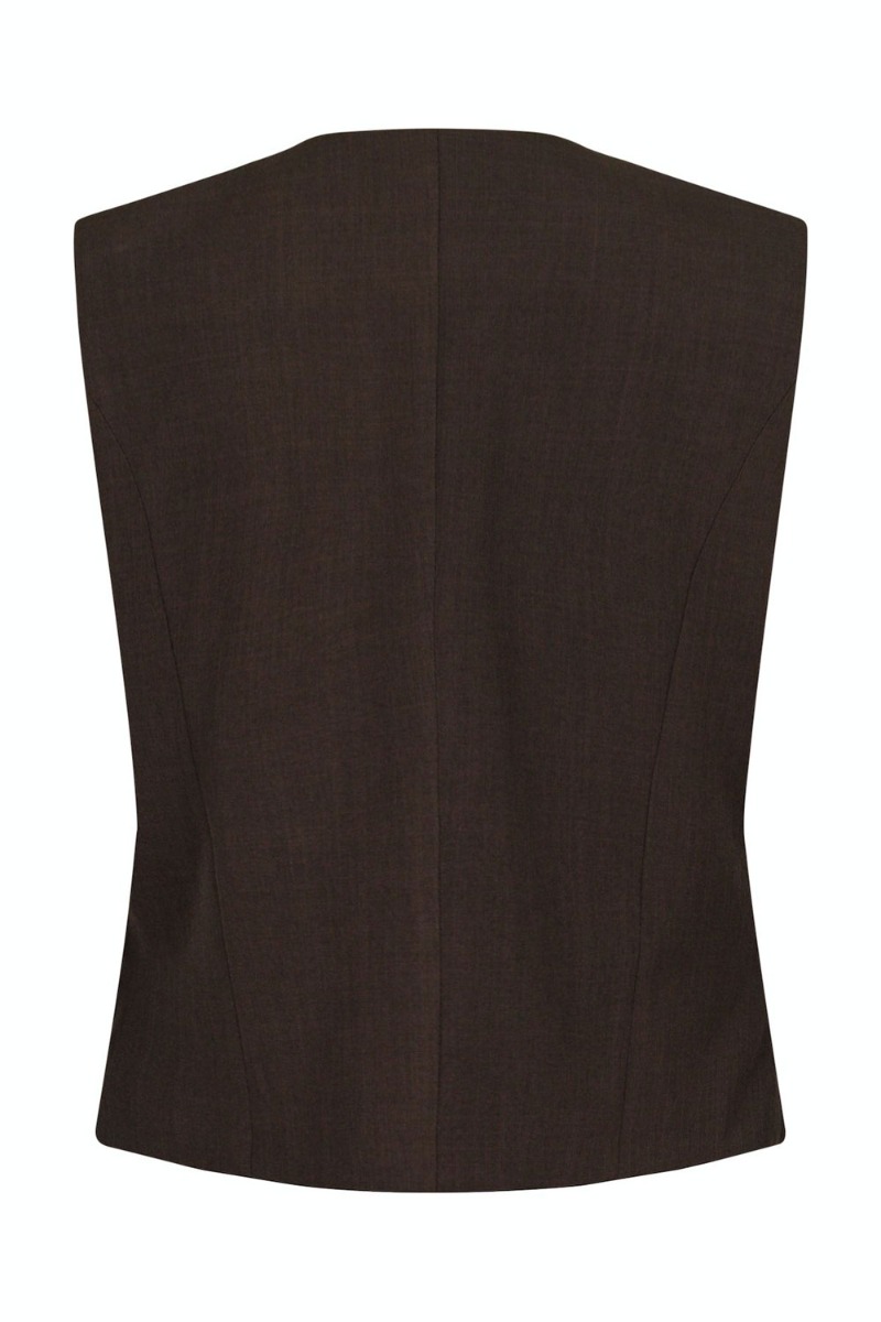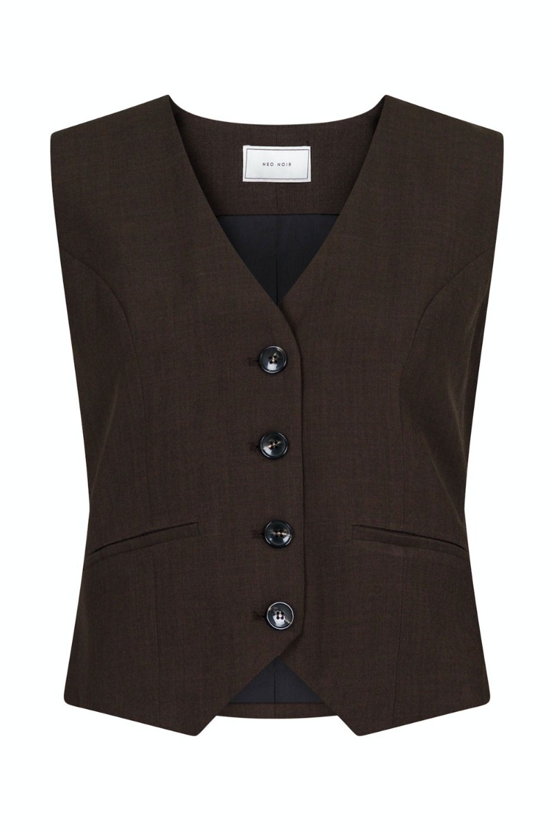 En smuk vest er kommet fra Neo Noir i en endnu smukkere mørk brun farve. Den er en smule figursyet med knaplukning foran. Den har snyde lommer foran og passer fint sammen med de matchende bukser fra samme mærke. Derudover er foret med en glat og blød kvalitet, derfor er den fin at have på som den er men også fin med en t-shirt eller skjorte over.