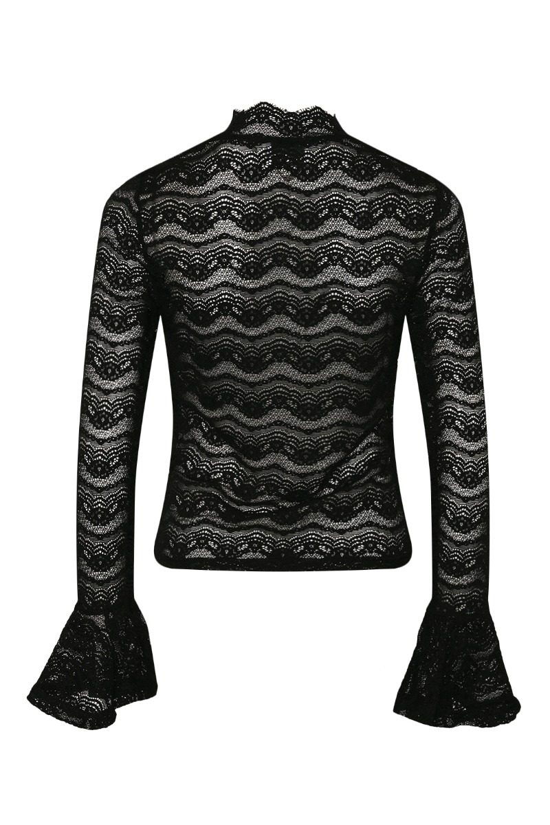 En smuk blonde bluse fra Noella kommer til denne sæson. Den er med høj hals og har en bred flæse kant i bunden af ærmerne som giver et smukt og feminint udtryk. Den er gennemsigtig og derfor anbefaler vi at du bruger en top under.