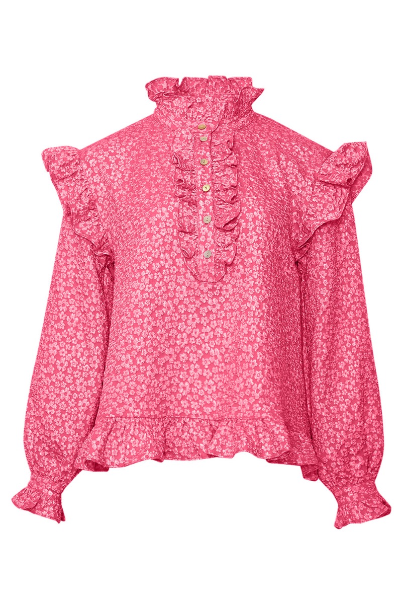 Noella - Bluse - Reno Ruby Ruffle Blouse - Bright Pink