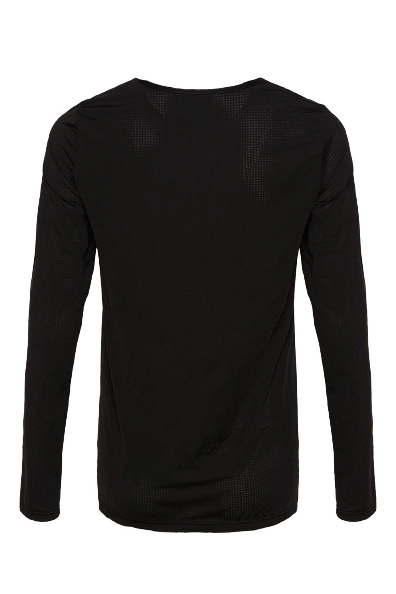 Sort enkel bluse fra Noella i en tætsiddende pasform med rund hals og lange ærmer. Blusen har rynkeeffekt i midten, hvilket får den til at sidde super flot og behageligt med masser af stretch. Den kan bruges med en babybule også.