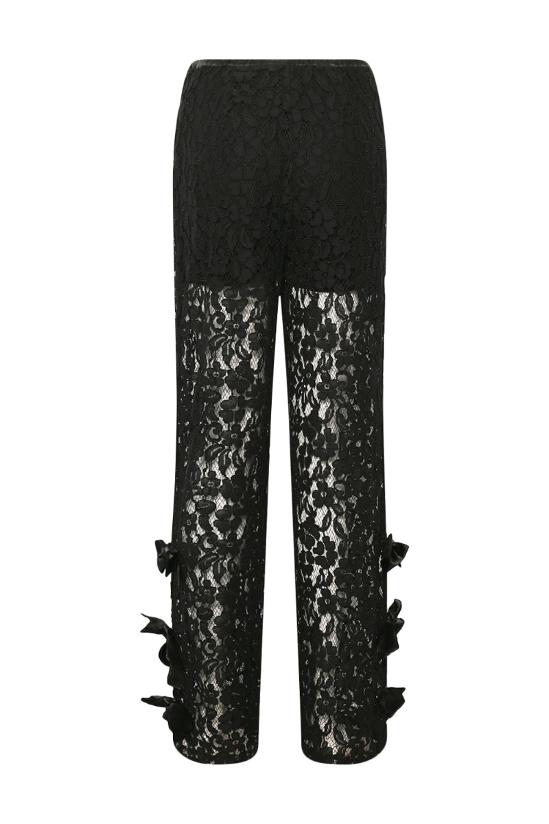 De flotteste bukser fra Noella med flotte detaljer! Disse bukser er desinget i et feminint blondestof og er transparente fra låret og ned. Som detalje har de blomster på siderne af hvert bukseben. Style dem evt. til de kommende julefrokoster eller til en flot top til nytår!