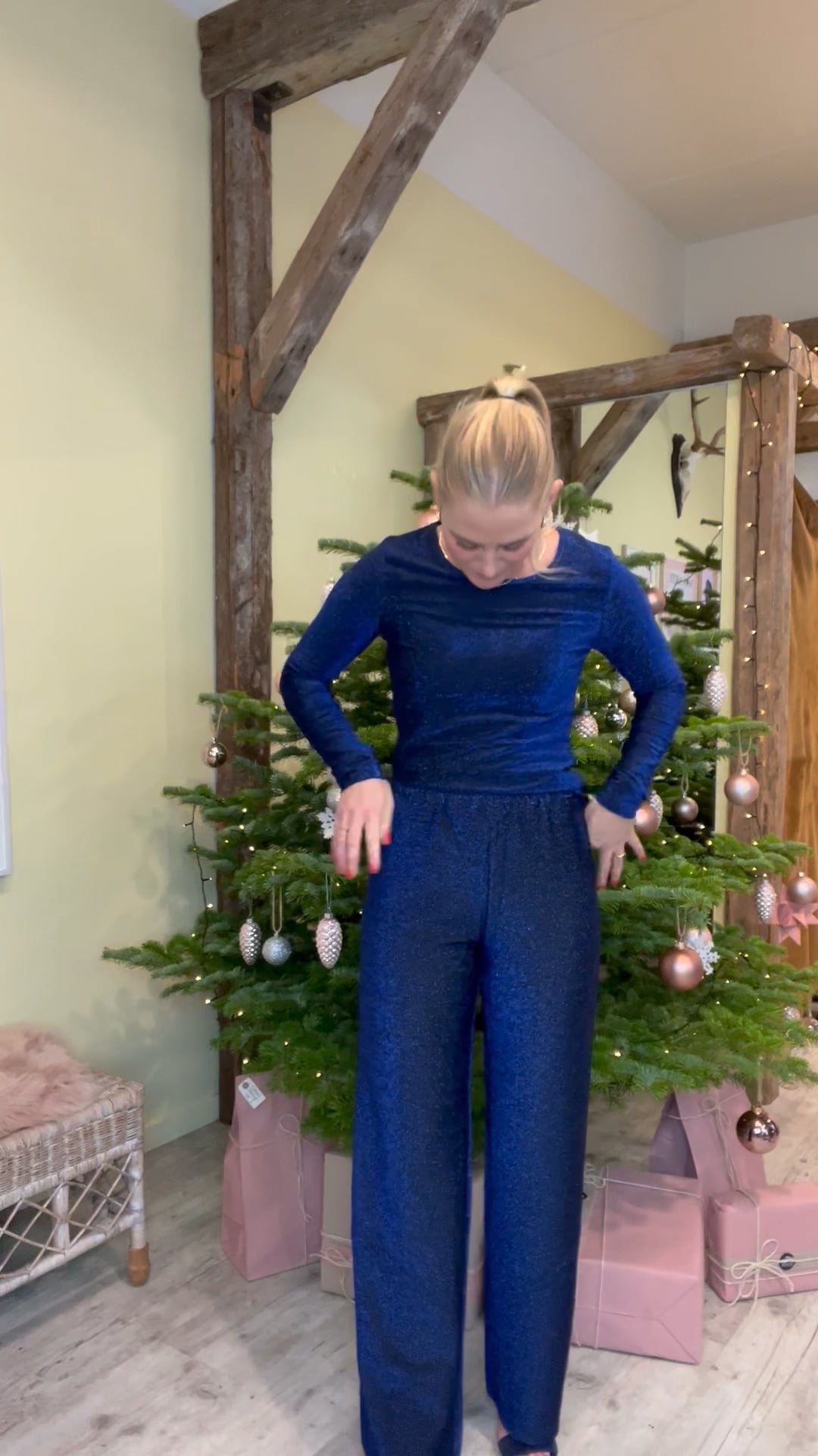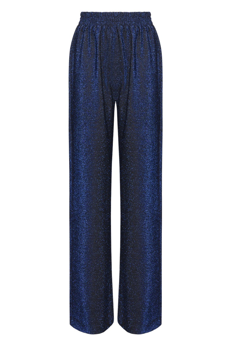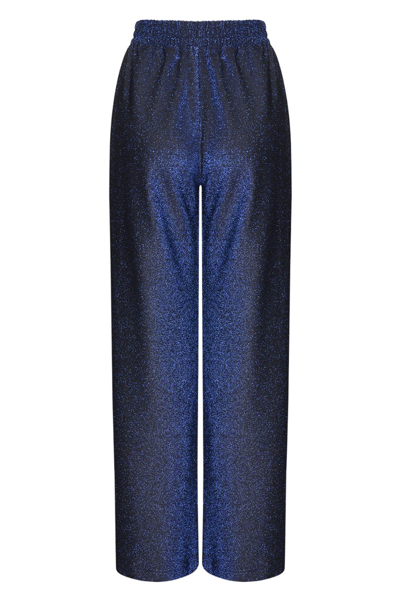 Et par flotte bukser fra Noella er kommet i blå med glimmereffekt. Den er med vide i benene og har elastik i taljen. Den kommer med en matchende bluse som man kan bruge som sæt ellers kan man sagtens bruge en anden overdel fra skabet til disse bukser.