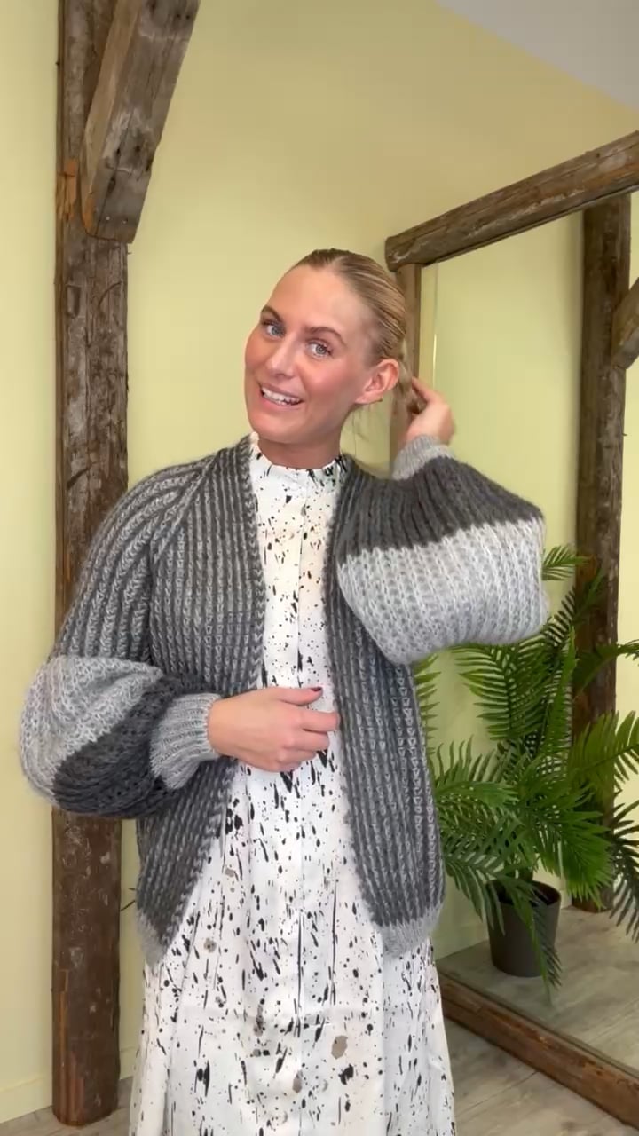 En dejlig blød cardigan fra Noella er kommet i en ny farvekombination. Den er i to grå nuancer, men stadig det samme fine mønster. Der er brede ærmer og en løs pasform samt den er løs i strikken, dette giver et afslappet udtryk til dit hverdagslook. Den findes også i en bluse model og i flere farver.