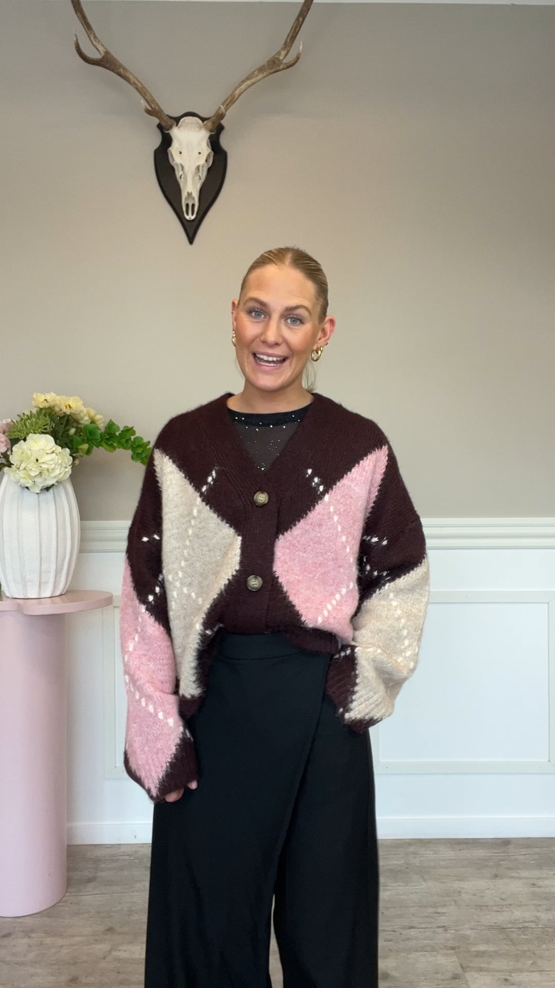 En virkelig blød og behagelig hyggelig strik cardigan fra Noella i de skønneste farver. Cardiganen er blød og kradser ikke på kroppen. Den lukkes foran med gennemgående knapper så du har mulighed for både at bruge den åben og lukket. Style den til de kølige efterårsdage.
