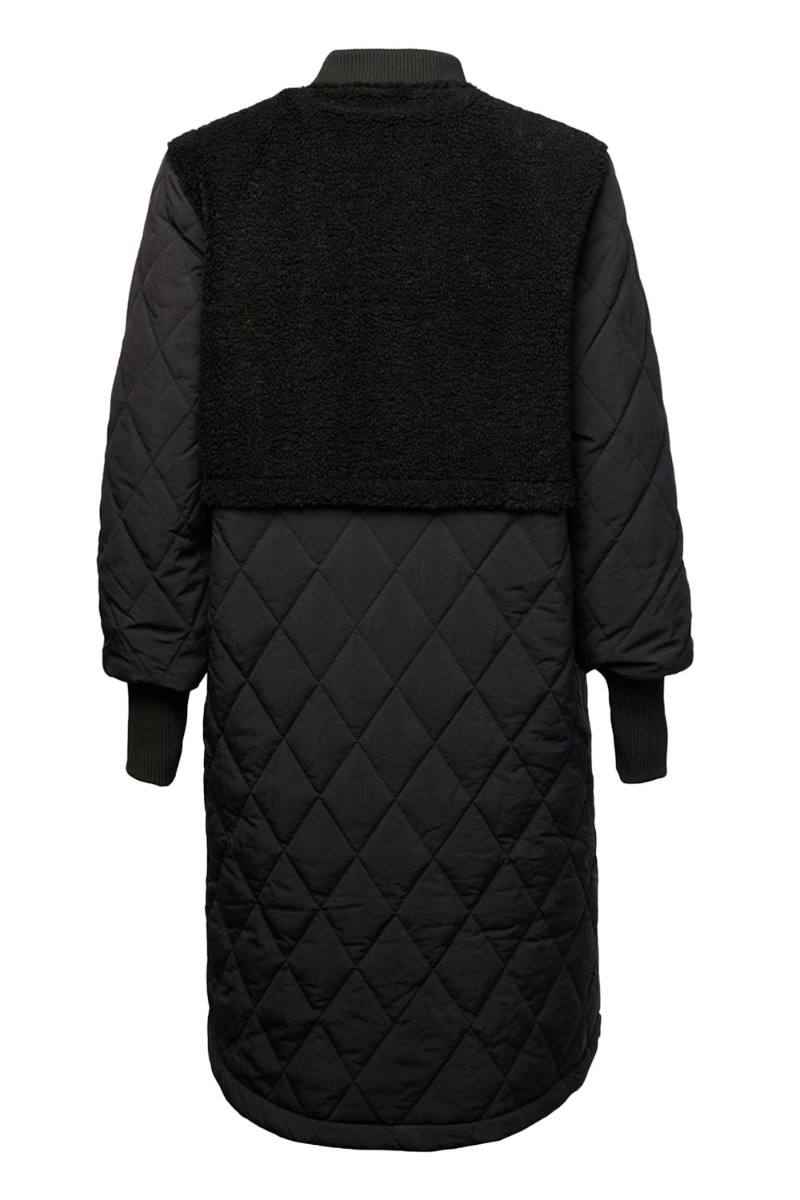 Cool overgangsjakke fra Noella med teddy ærmer og quiltet kvalitet. Jakken har super seje detaljer med lommer foran og en god længde. Den lukkes foran med lynlås og nkapper og har en bred ribkant ved håndled og holder kulden ude til efteråret.