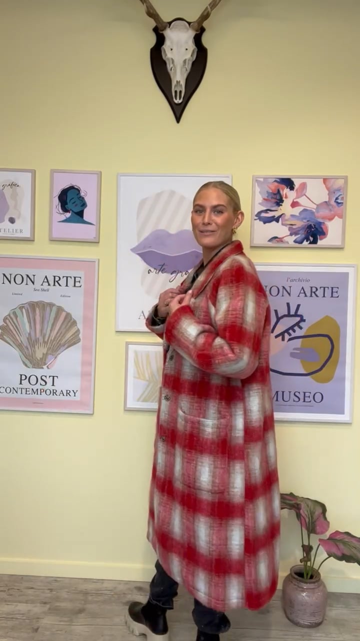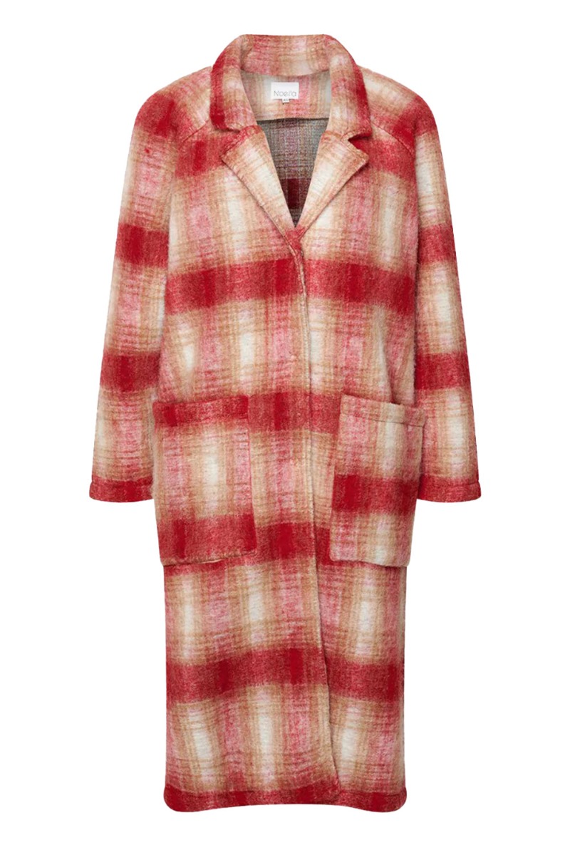 Flot oversize jakke fra Noella den blødeste kvalitet. Jakken er designet i et ternet mønstet med røde, brune og hvide farver. Den lukkes foran med skjult trykknapper og har v-udskæring foran. Desuden har den to store lommer på fronten og super cool til hverdagslooket.