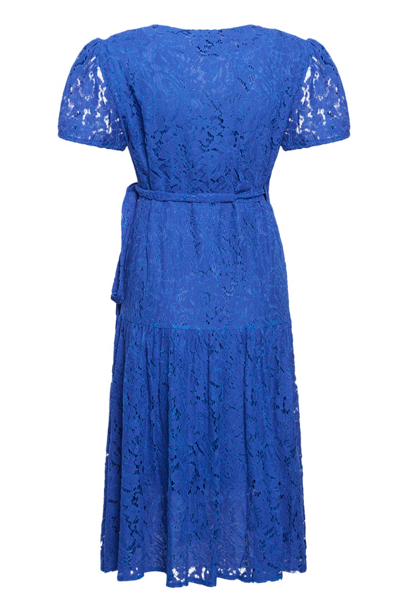 SMUKKESTE blonde kjole fra Noella med slå-om der bindes i siden. Kjolen har en feminin pasform med peplum og v-udskæring. Den er med et lille t-shirtærmer der afsluttes med elastikkant. Denne kjole er oplagt til de kommende bryllupper og fester.