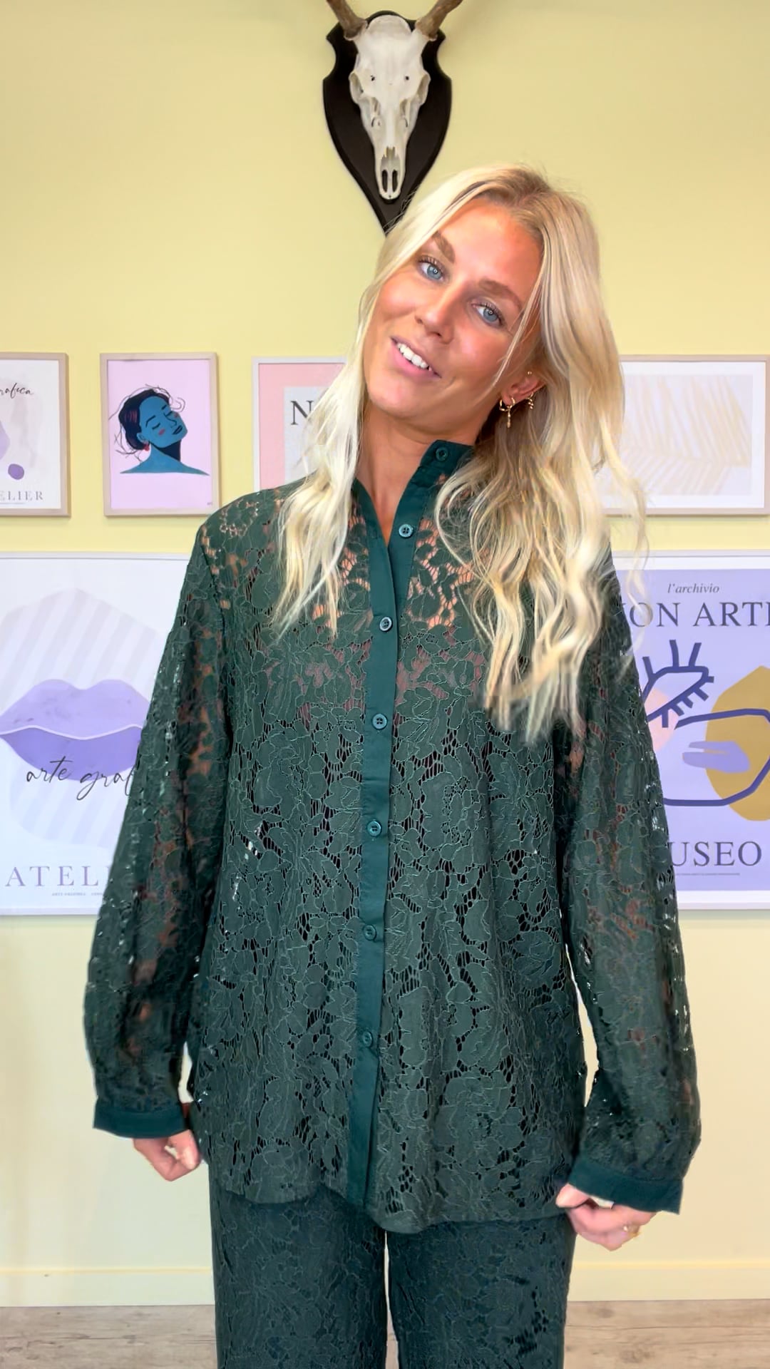 En fin skjorte fra et sæt i grøn fra Noella. Skjorten er en del af et sæt som vi har haft i flere forskellige farver - og det er altså altid en favorit. Den smukke mørkegrønne farve er perfekt her til efteråret. Selvom skjorten er en del af et sæt kan den sagtens sættes til en anden underdel.