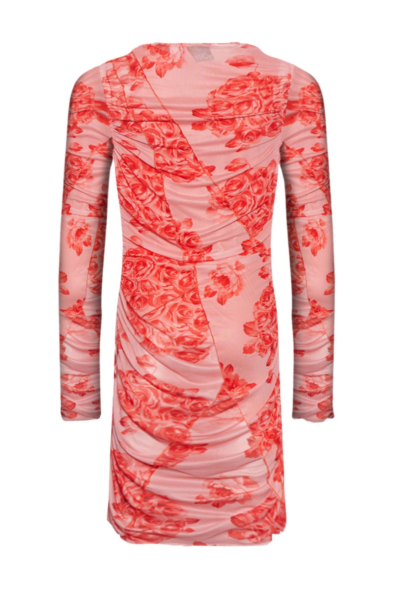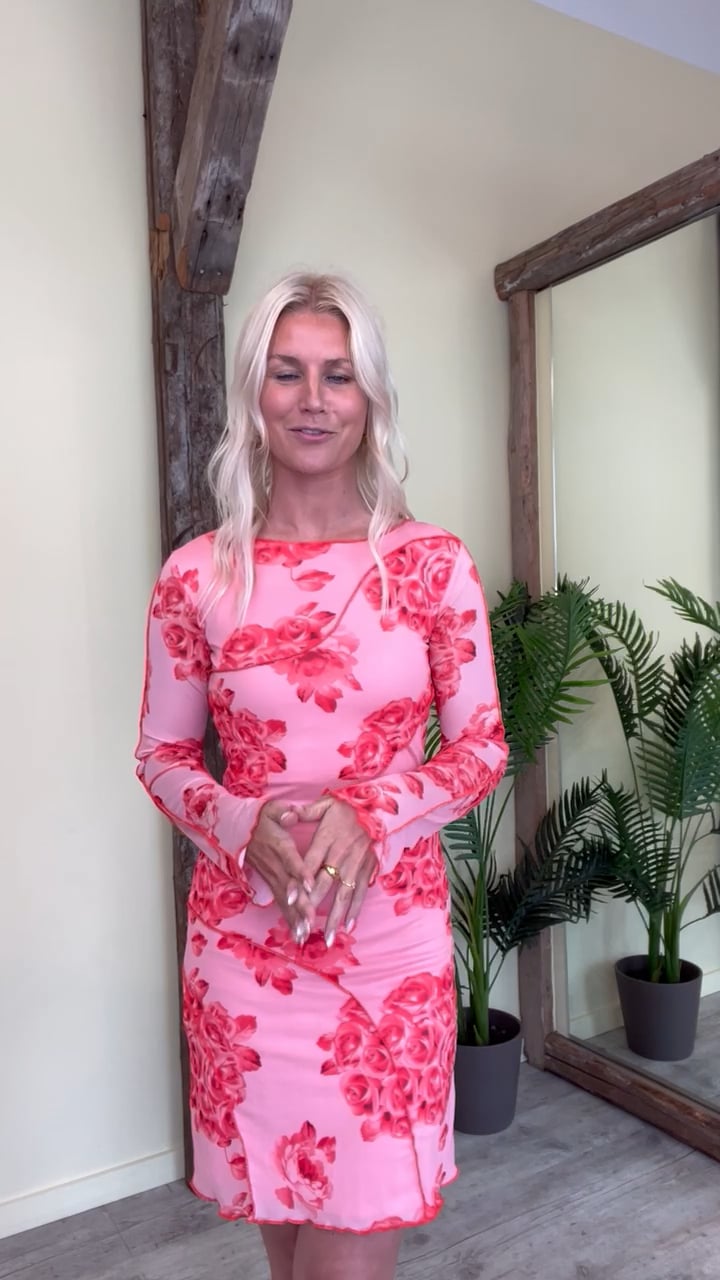 Super smuk kjole fra Noella i meshkvalitet og det flotteste rosa print og røde detaljer.