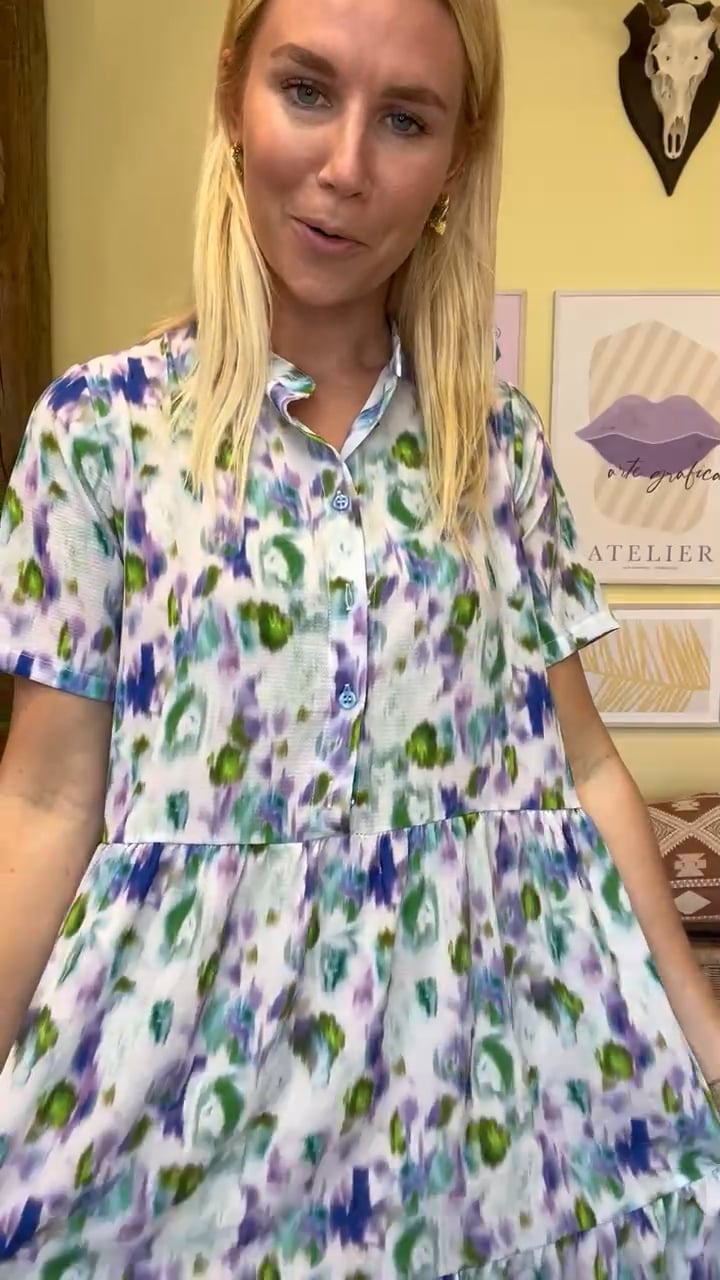 LIPE kjolen fra Noella plejer altid at være en kæmpe favorit og nu har vi fået den i en smuk lang model! Kjolen har et utroligt taknemmeligt snit der klæder de fleste kropstyper med peplum og knapper ned til livet. Bundfarven er lys med et grafisk print i blå, grønne og lilla nuancer. Denne kjole er et MUST da den virkelig kan styles til alle anledninger.