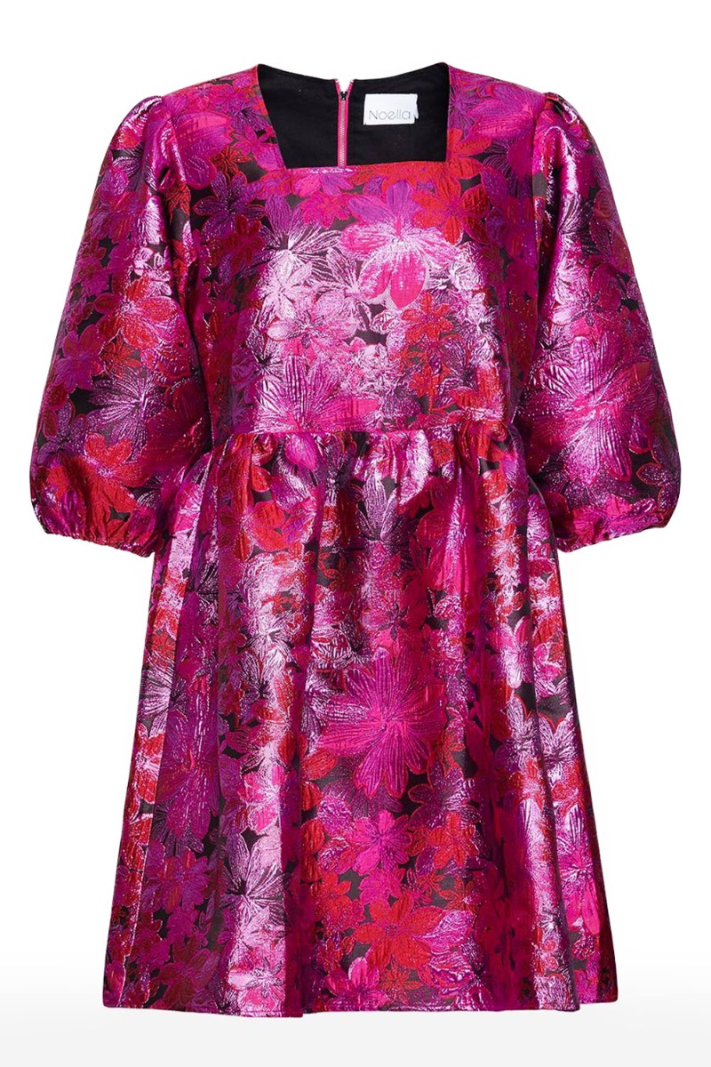 Den smukkeste kjole fra Noella med de fineste detaljer. Kjolen har et feminint snit ved taljen med peplum effekt i bunden, der giver en rigtig sød pasform. Den har det smukkeste print som virkelig skiller sig ud med shineeffekt. Kjolen har en firkantet udskæring og lukkes bagpå med lynlås.