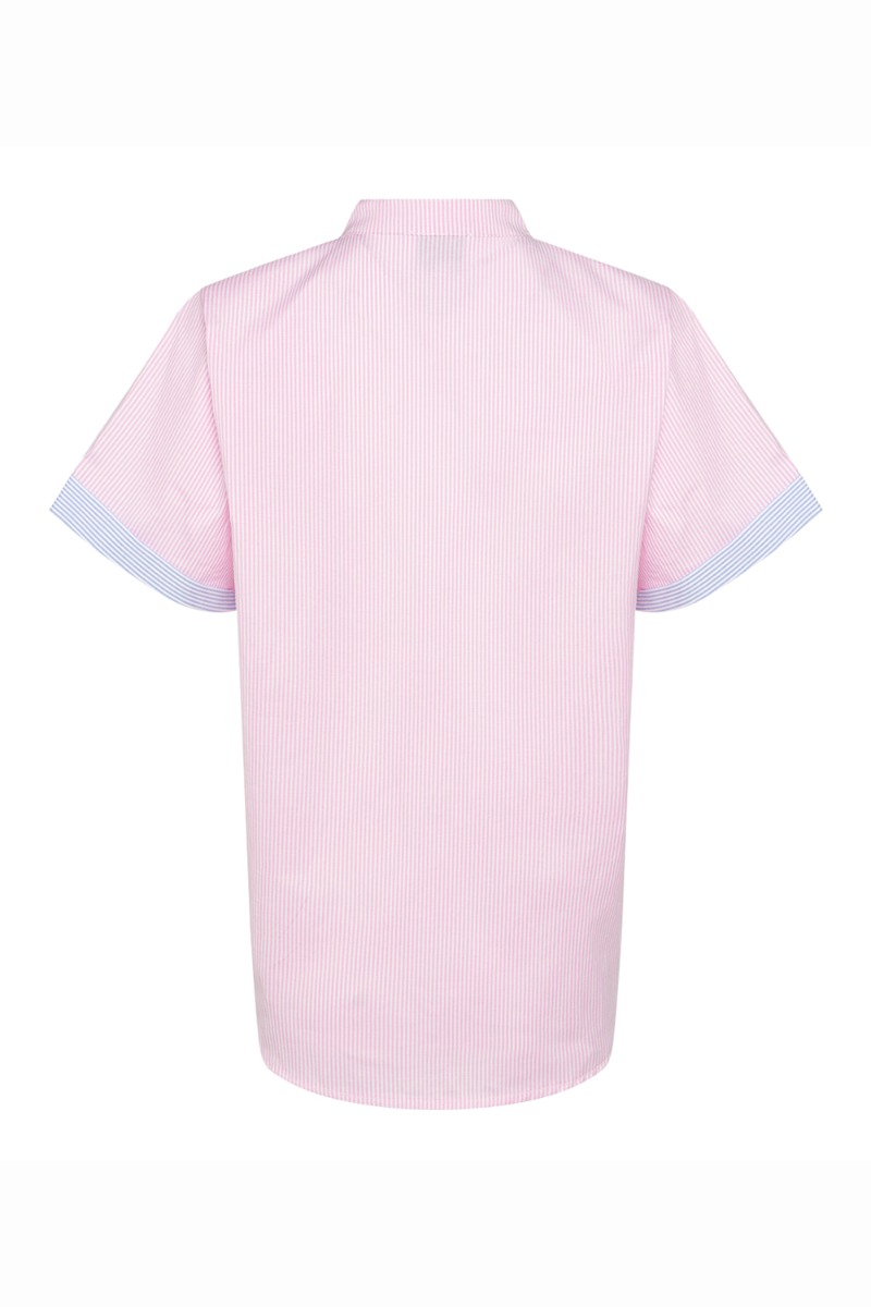 Pink skjorte med blå lomme og ærme