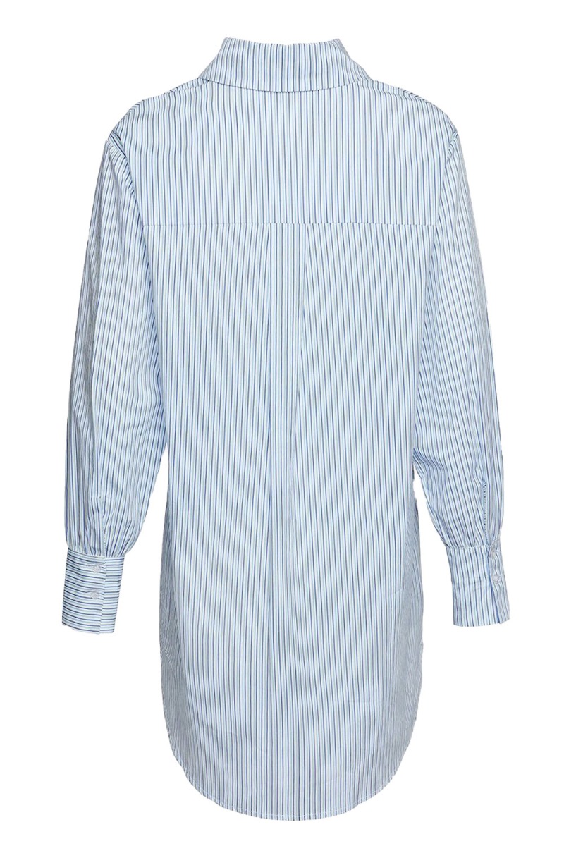 Super cool oversize skjorte fra Noella i et meget minimalistisk look der minder lidt om din kærestes skjorte. Den er designet i blå og hvide striber hvilket giver et super cool look og kan både bruges åben og lukket.