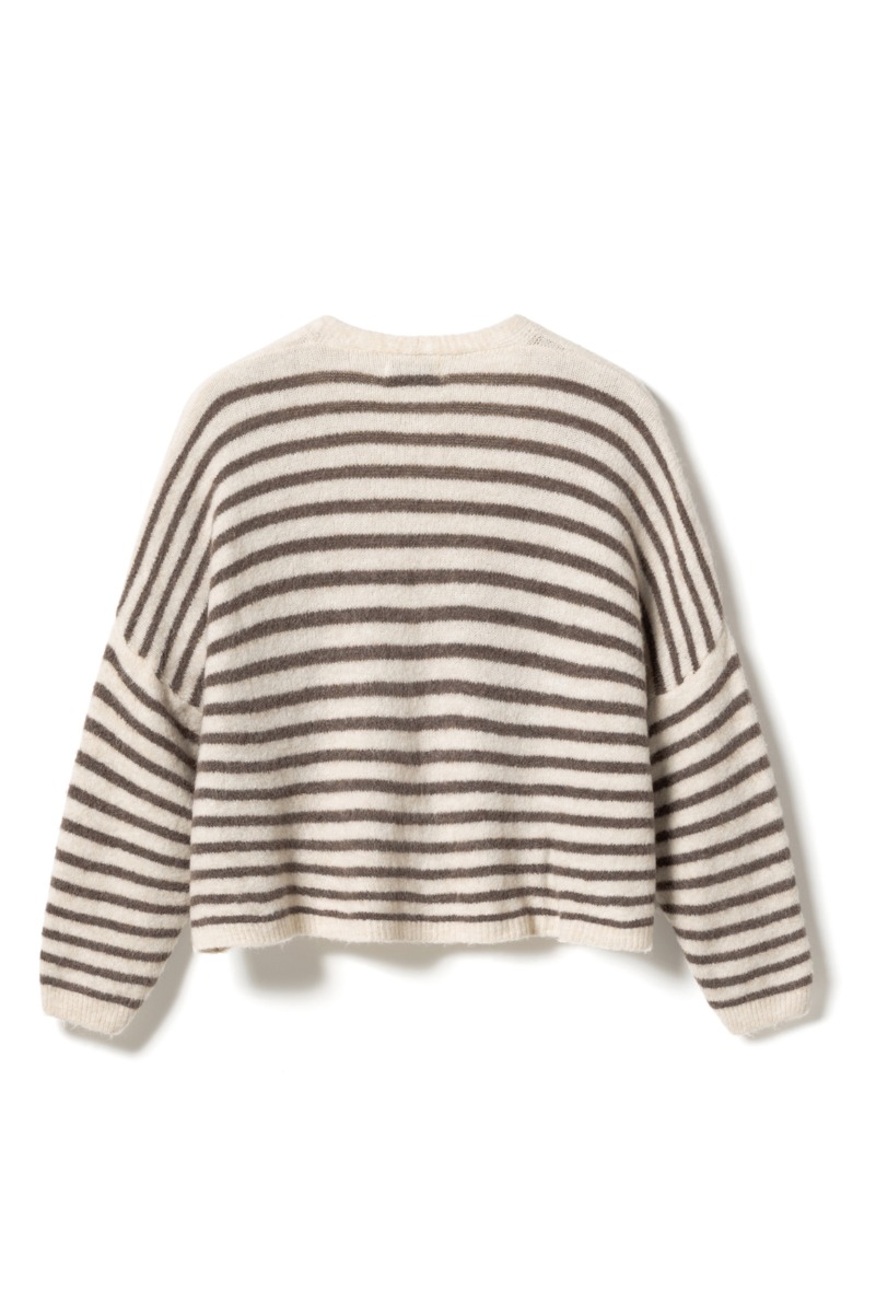 Noella - Strik - Lenda Knit Cardigan - Brown Ivory Stripe
