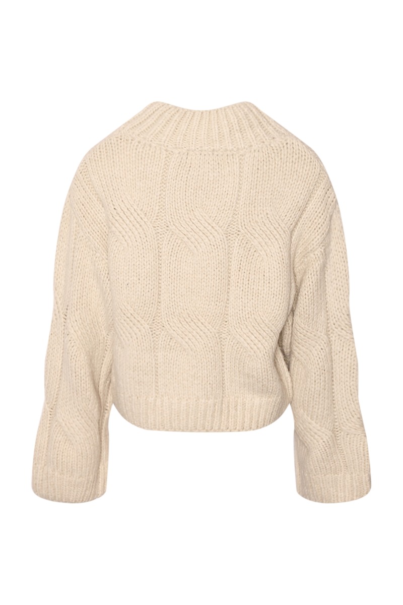 En super fin strik fra Noella i en lidt kortere model. Denne strik er med store kabelstrikkede mønstre og i en lækker, tyk kvalitet, så du er sikker på at holde varmen!