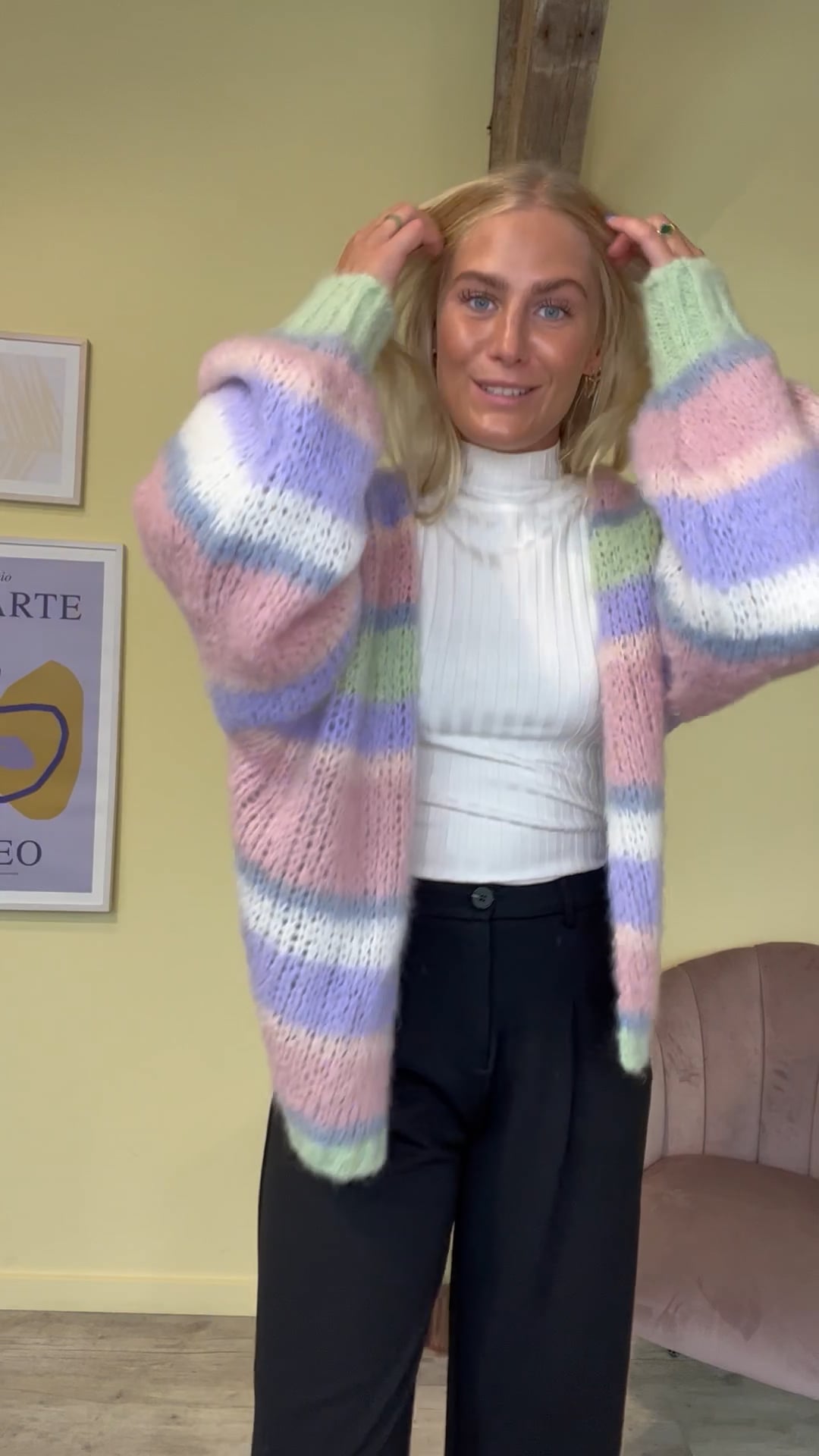 Iiiih se lige den smukkeste strik cardigan fra Noella i den blødeste kvalitet! Den perfekte cardigan til de lidt koldere sommeraftener, i en lækker løs oversize pasform.