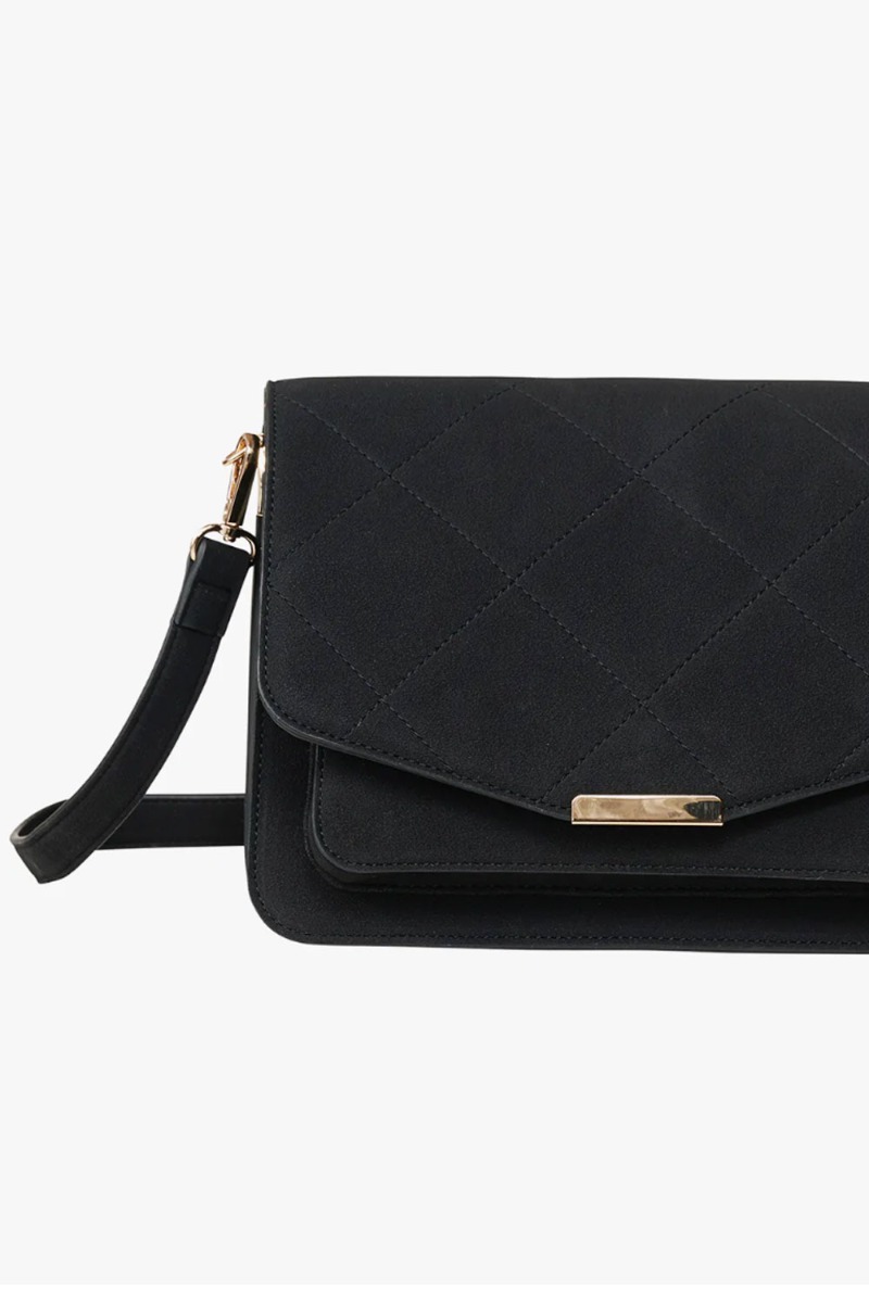 Smuk sort suede taske fra Noella i en god størrelse til enhver begivenhed. Tasken har en kort og en lang rem der gør du nemt kan bruge den på forskellige måder. Tasken har plads til alle dine nødvendige nips og har en ekstra lomme foran også.