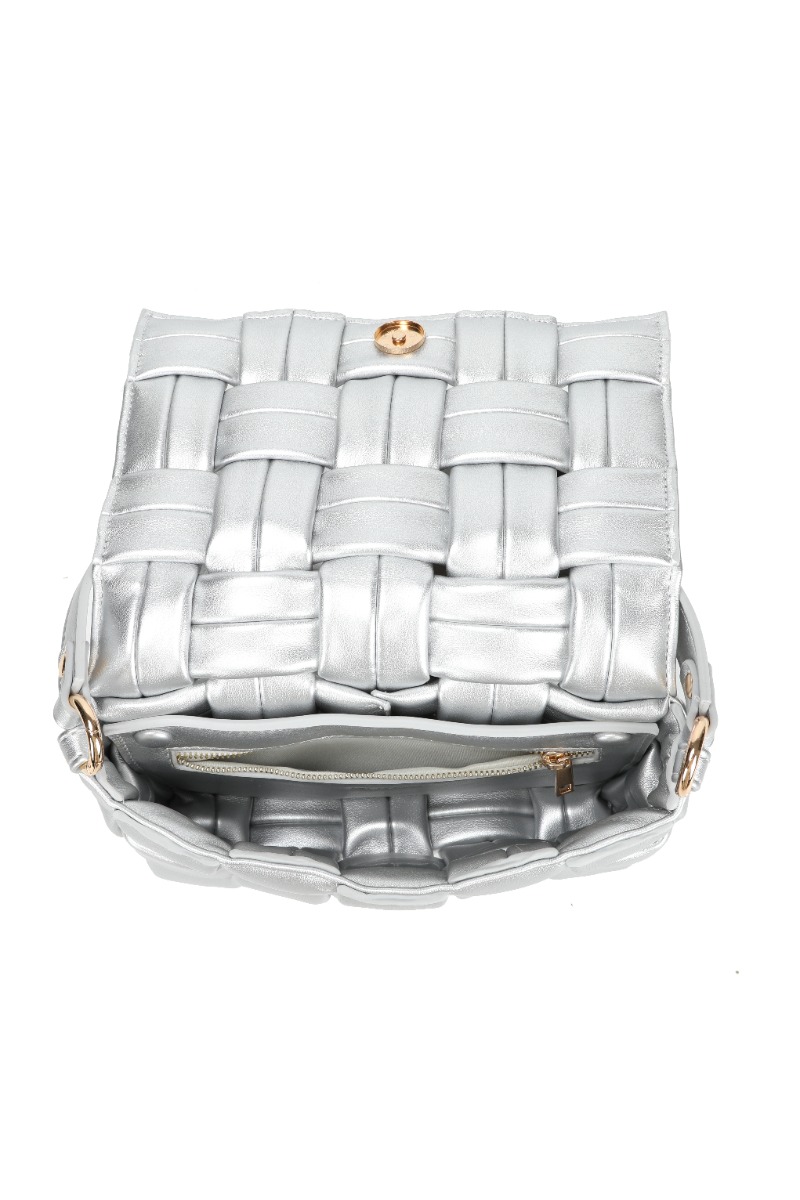 En sej sølvfarvet taske i det klassiske flettede look. Noella tasken har medfølgende rem med der gør det muligt at bruge den som crossover og clutch alt efter humør og anledning. Den har en god størrelsen til enhver anledning og har plads til alle dine små nipse ting.
