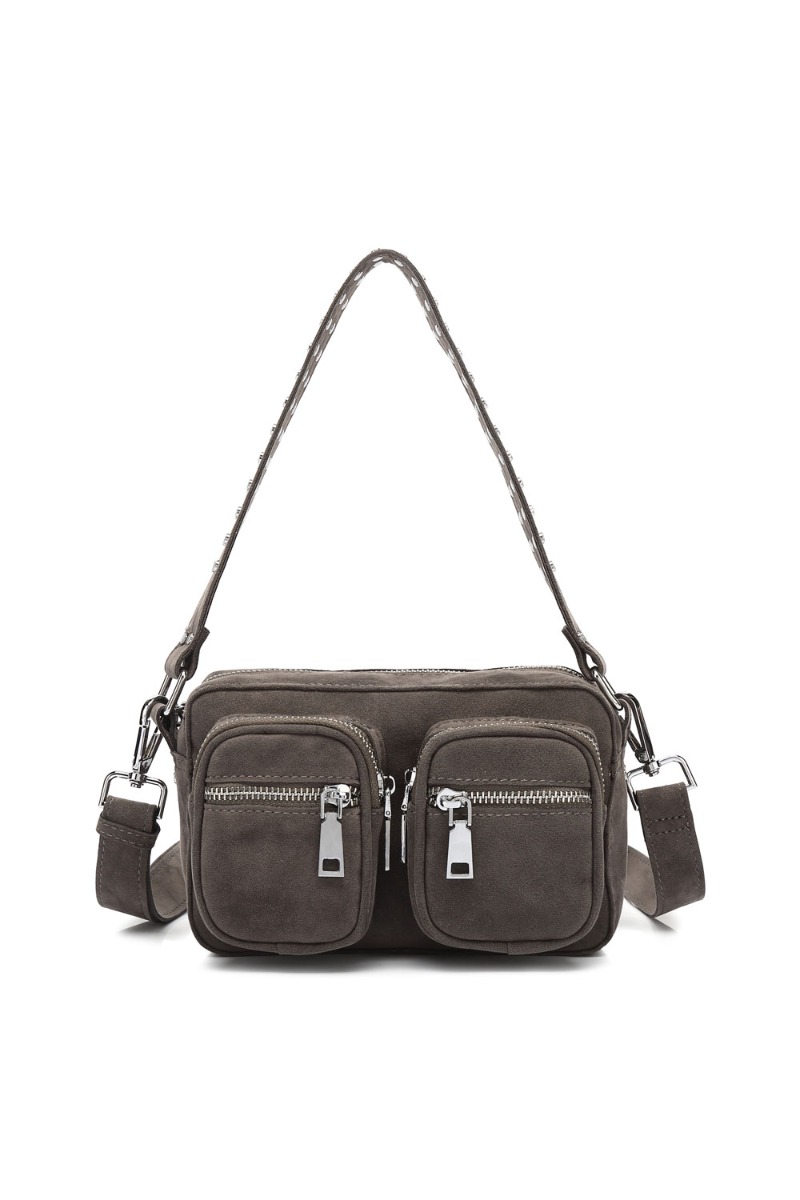 En fin taske i en mindre model i kunstruskind fra Noella i en smuk grå frave. Tasken har to stropper som kan skiftet så det kan blive en skuldertaske eller en crossover. Den er med lommer både indvendigt og udvendigt og alle lommer lukkes med en lynlås. Den findes også i flere farver og kvaliteter.