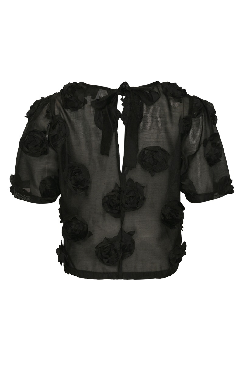 Så kommer den fineste t-shirt fra Noella. Den har roser på og kommer i et transparent look. Vi anbefaler derfor at bruge en top under. T-shirten kan pifte ethvert outfit op og kan styles til både jeans og nederdel mm.